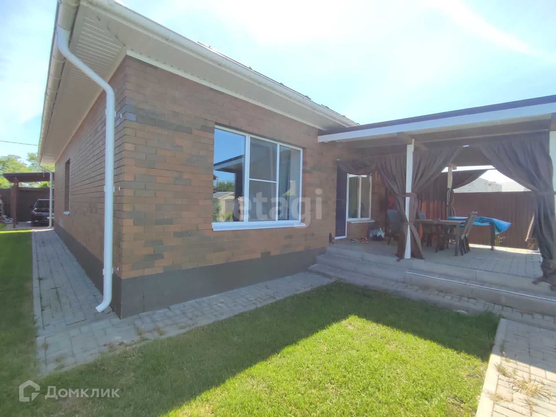 В дом 2 входа. Парадный вход со стороны калитки, второй - выход на террасу из кухни-гостиной.
