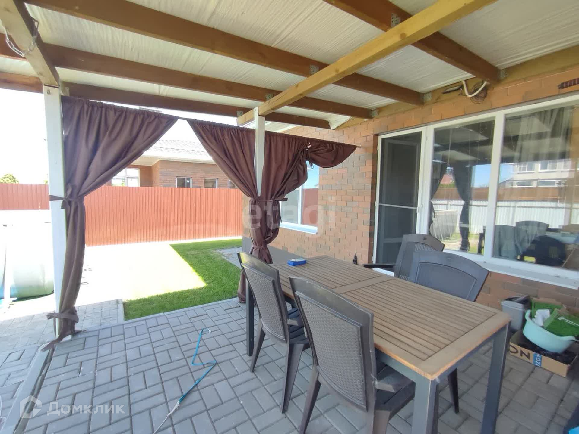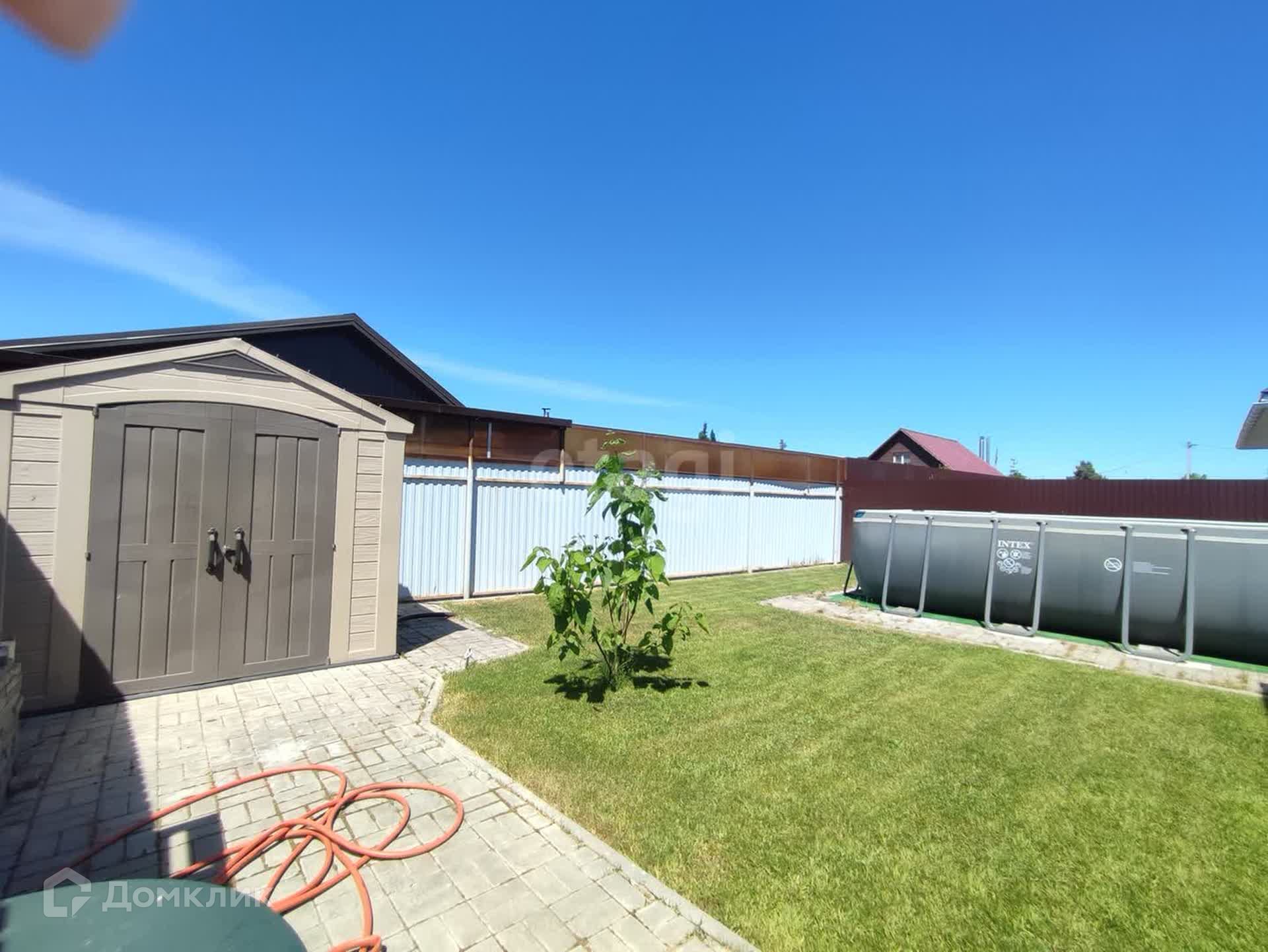 На территории есть площадка под каркасный бассейн, либо перголу/уличный очаг.