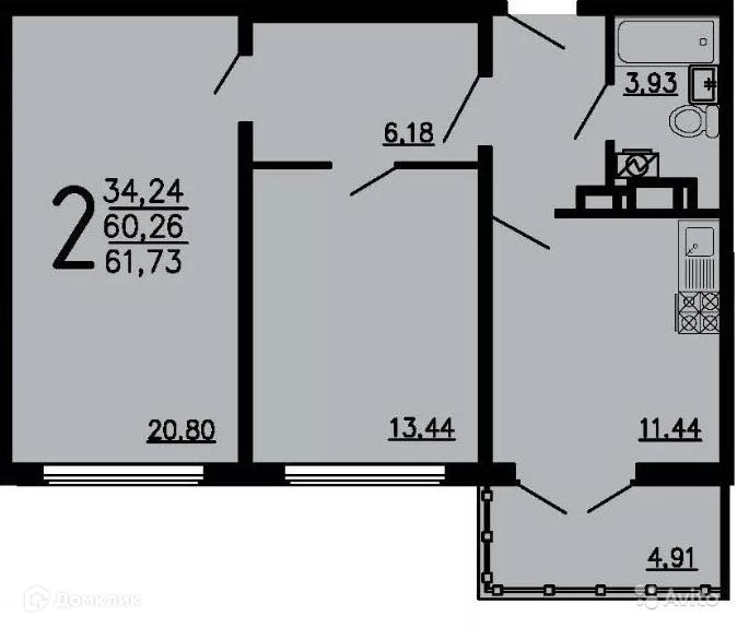 Общая площадь 60.5 м2