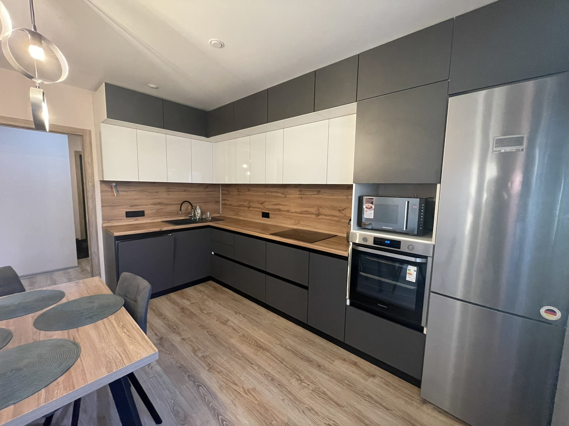В стоимость входит новый встроенный современный кухонный гарнитур, вместительный и очень функциональный, а так же посудомоечная машина, варочная поверхность и духовой шкаф.