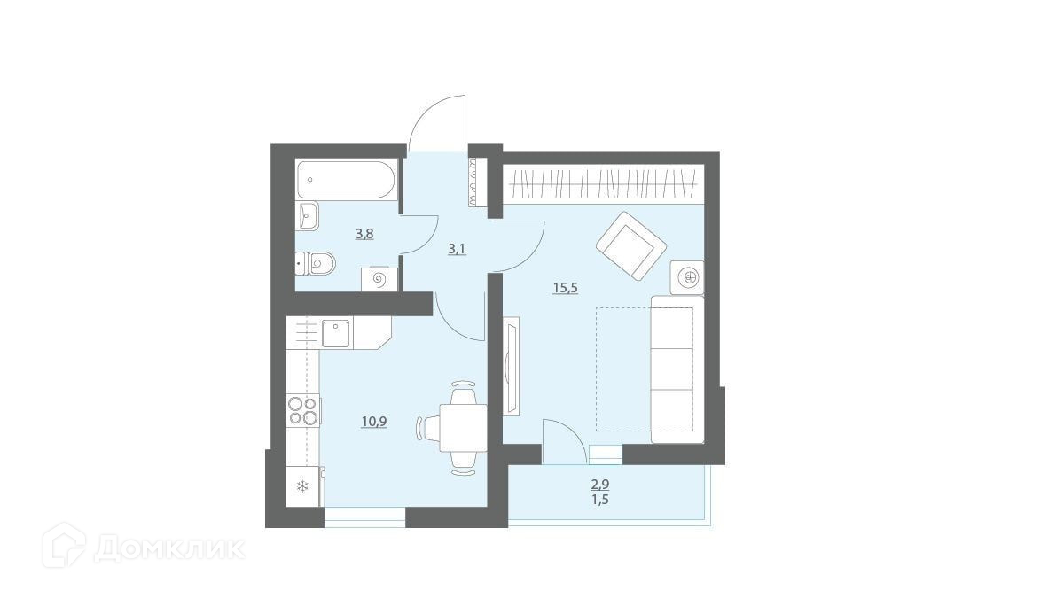 Общая площадь 35 м2