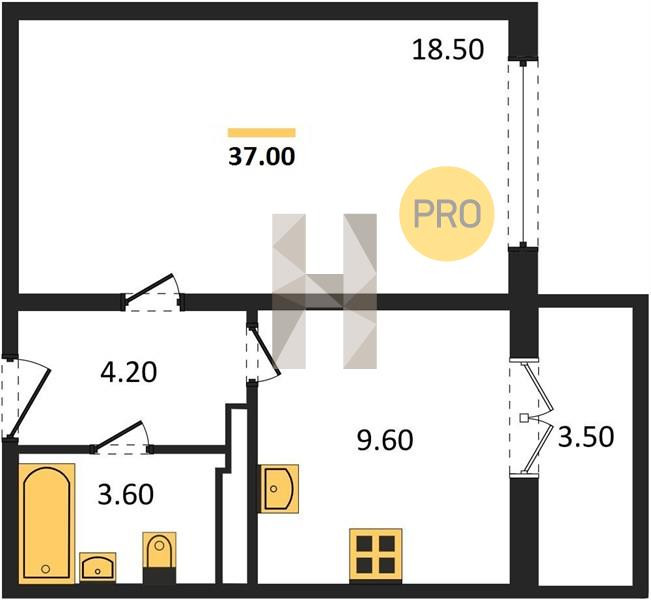 Общая площадь 37 м2