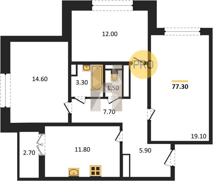 Общая площадь 77.3 м2