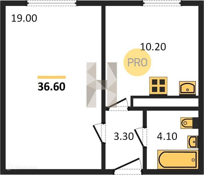 Общая площадь 36.6 м2