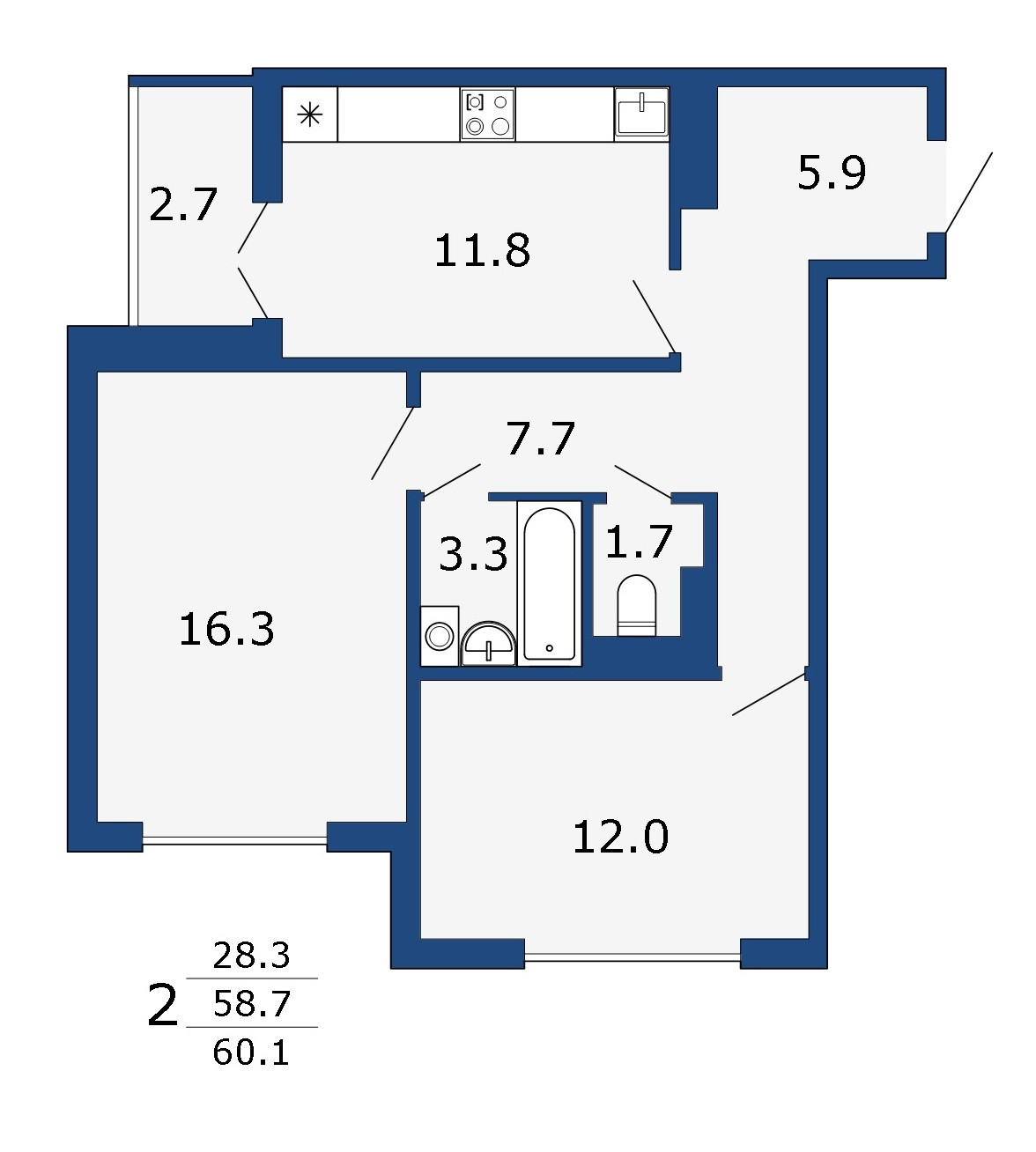 Общая площадь 60.1 м2