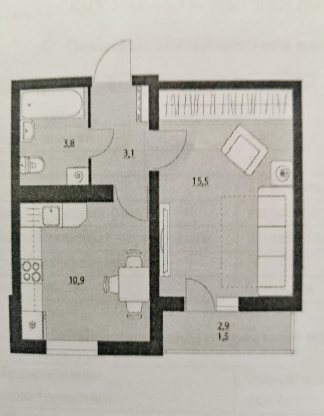 Общая площадь 33.7 м2