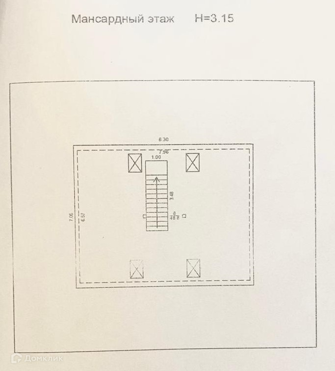 2-й этаж - 50 кв. м, с мансардными окнами - свободная планировка;