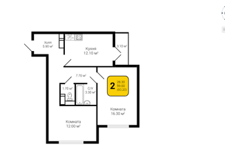Продажа 2-комнатной квартиры, 60.2 м2, Рубиновая улица, 11