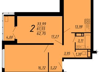 Продаю двухкомнатную квартиру, 61.7 м2, Рубиновая улица, 15