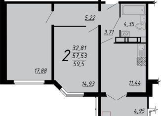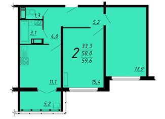 Общая площадь: 59.5 м2