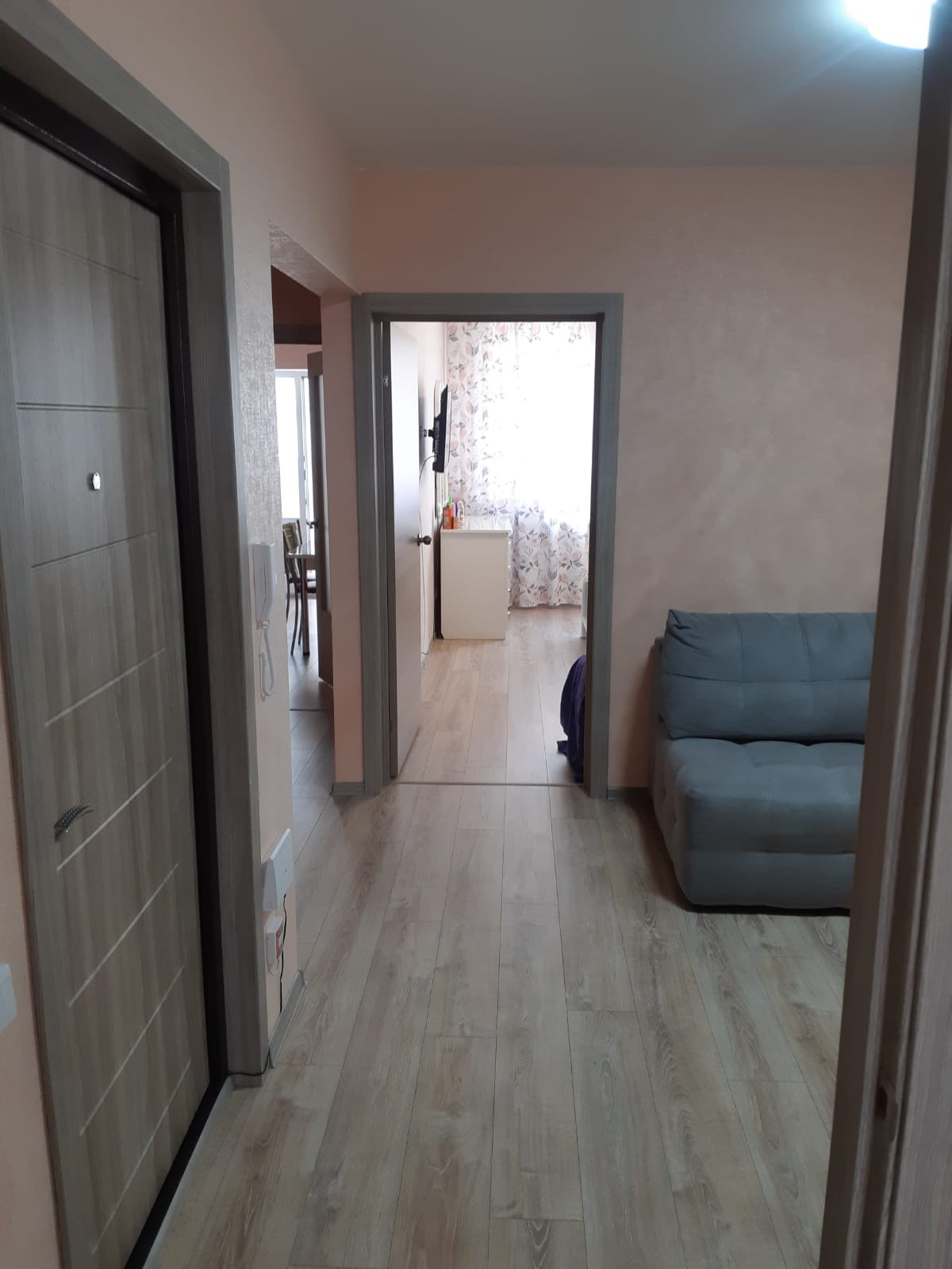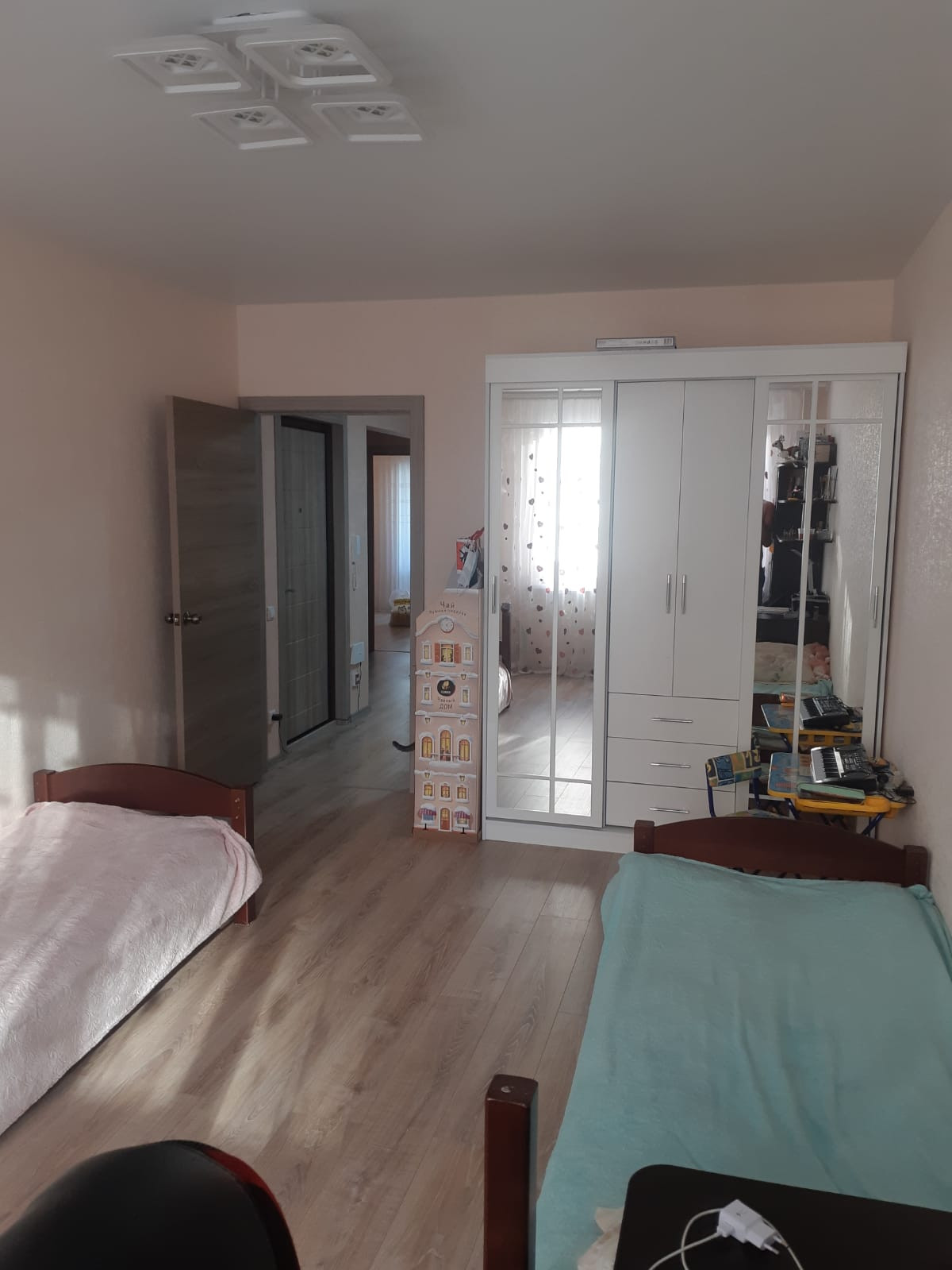 Продаем 2х комнатную квартиру с отличной планировкой в ЖК ''Черёмушки''. Новый быстро развивающийся район со всей необходимой инфраструктурой; новая школа, новый детский сад, магазины, аптеки, общественный транспорт ходит прям от ЖК, в конце года планируется строительство поликлиники. Одна из самых лучших планировок в нашем ЖК: большая кухня - 11,5м2, комнаты на разные стороны, прихожая 11м2, которую используем как зал и по факту получается как 3х комнатная квартира с двумя изолированными спальнями. Сделали большой тамбур только для своей квартиры. Отличный ремонт от застройщика: ламинат, натяжные потолки, хороший кафель в с/у.