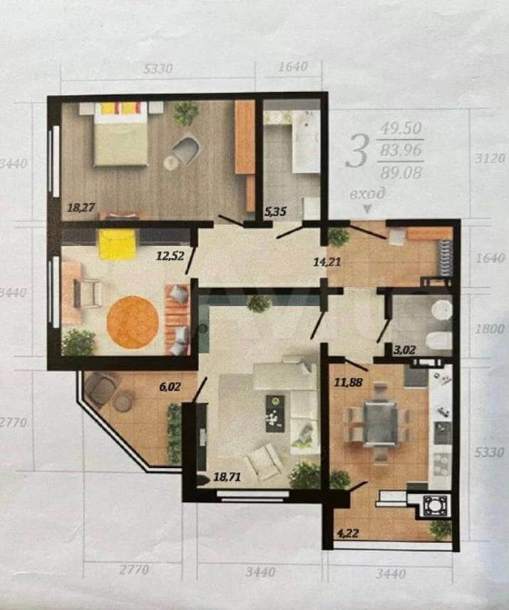 Общая площадь 89.08 м2