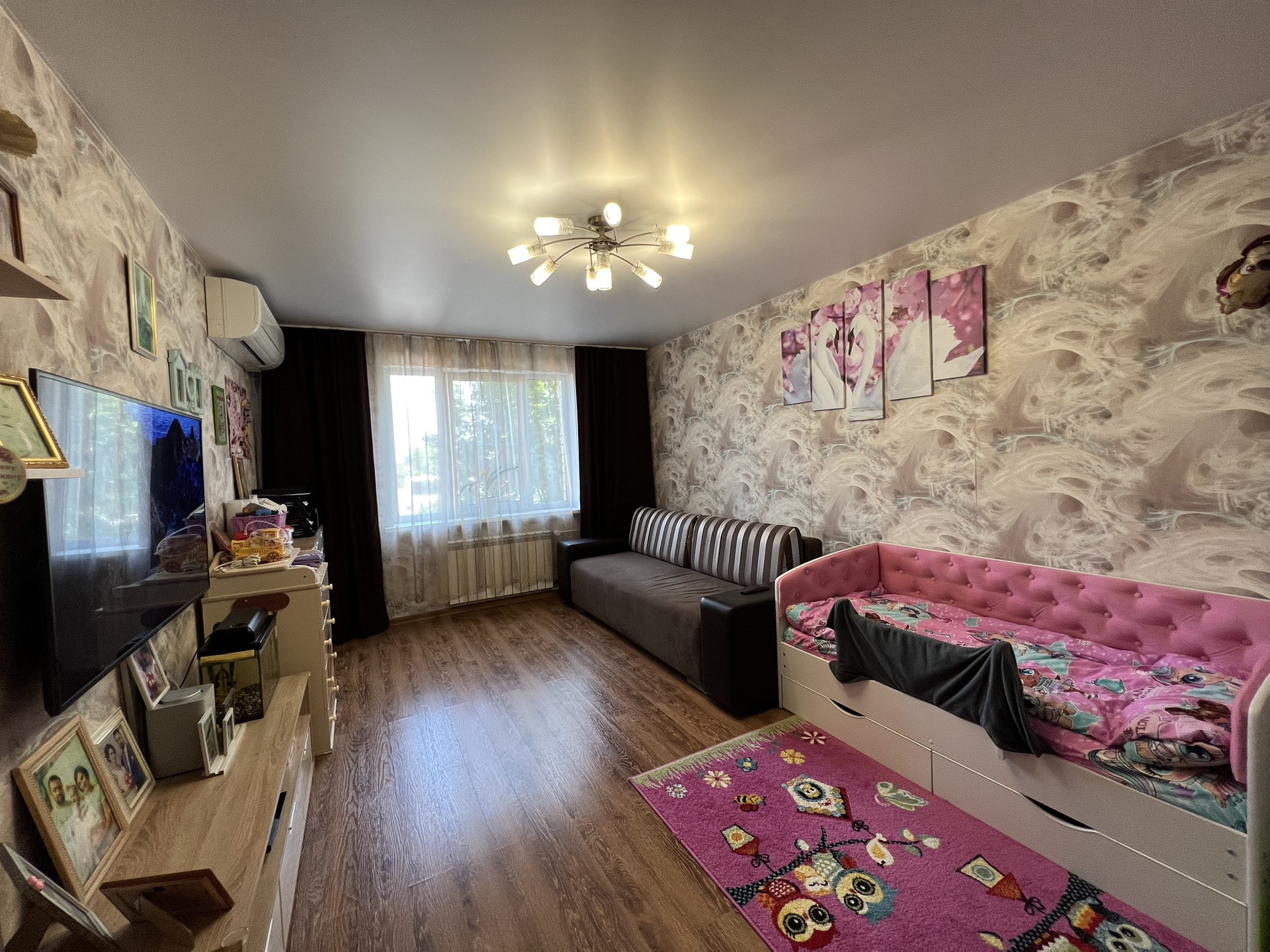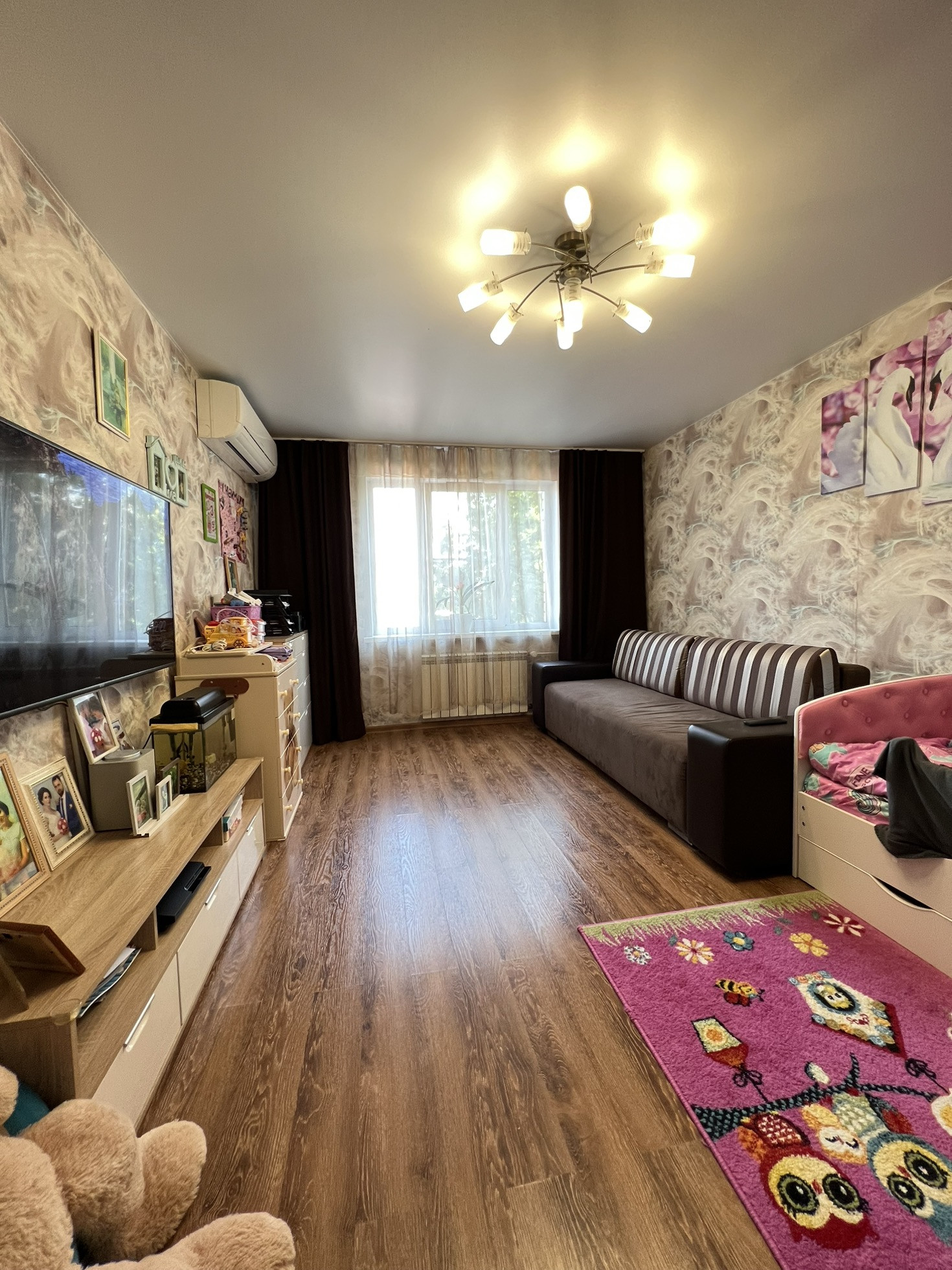 Продам шикарную квартиру в райском уголке и непосредственной близости от города.Удачная планировка:просторная светлая кухня,правильной формы комната,просторный коридор с прекрасно организованным местом для хранения одежды.Во всей квартире выполнен качественный ремонт.Низкие коммунальные платежи. Дом находится на достаточном удалении от проезжей части (низкий уровень шума). Удобный заезд, просторный и тихий двор, детская площадка, ландшафтное озеленение, фонтан.