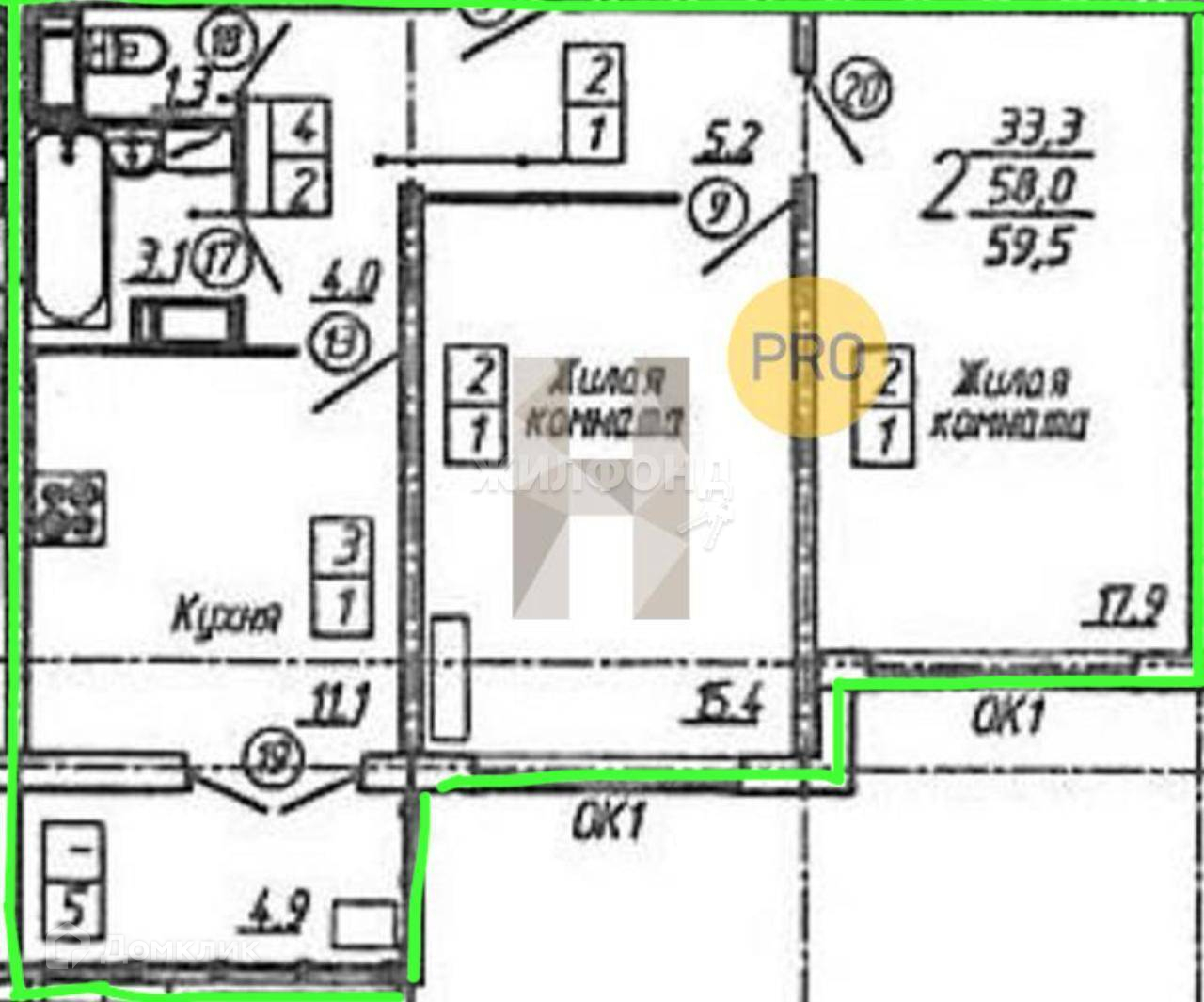 Жилая площадь 33.3 м2