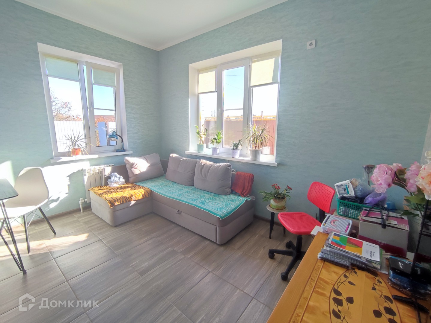 В доме 2 спальни, кухня-гостиная, совмещённый санузел.