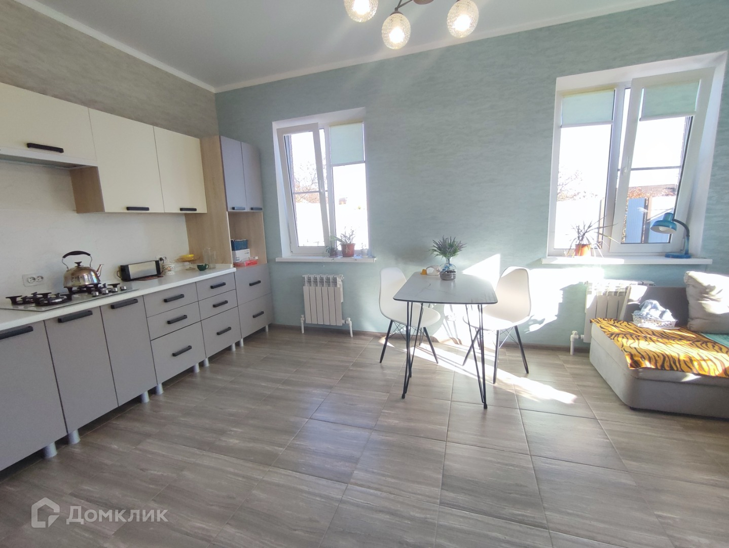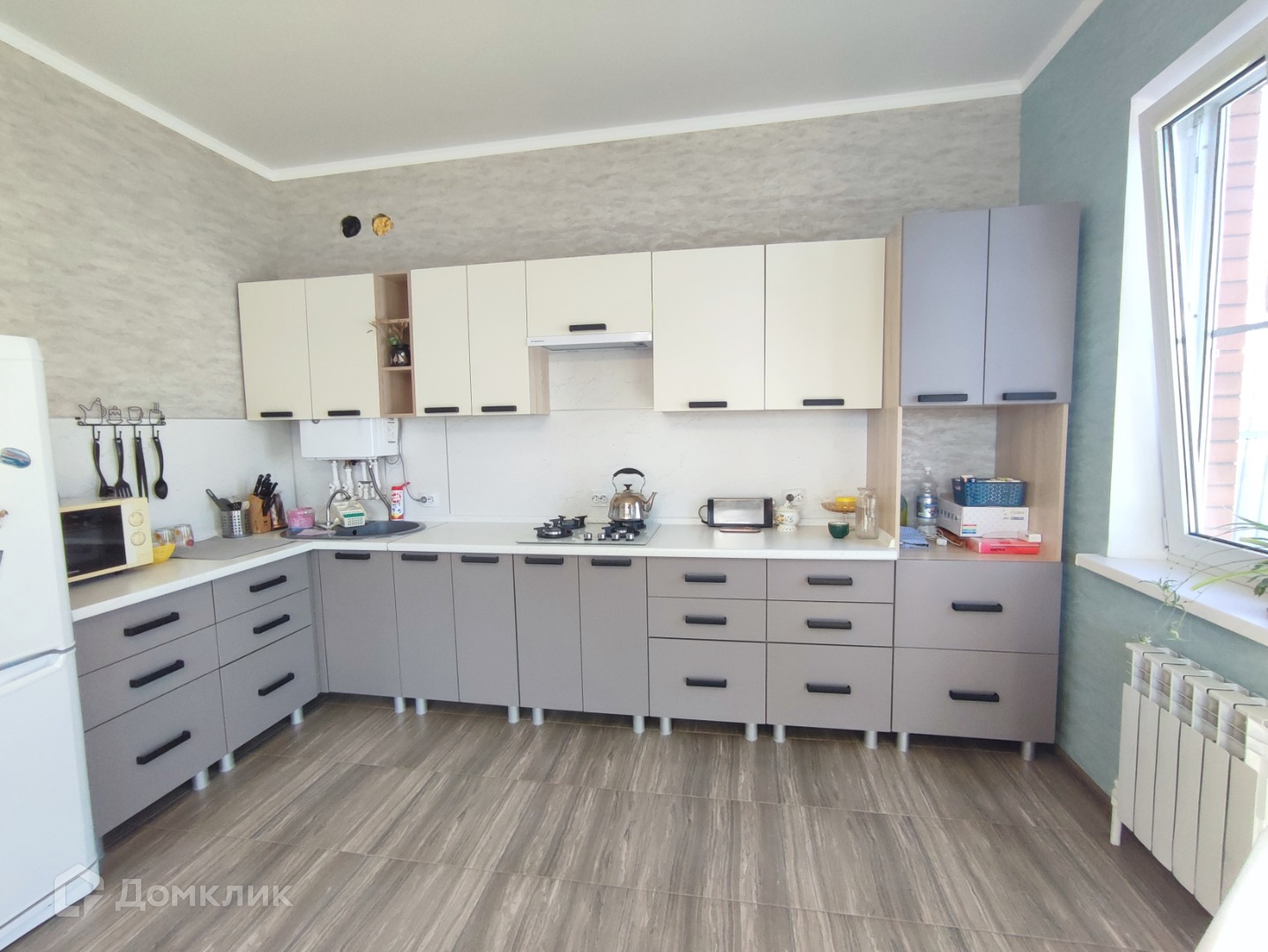 Тёплый пол в зоне плитки, в спальнях радиаторы, установлен двухконтурный котел.