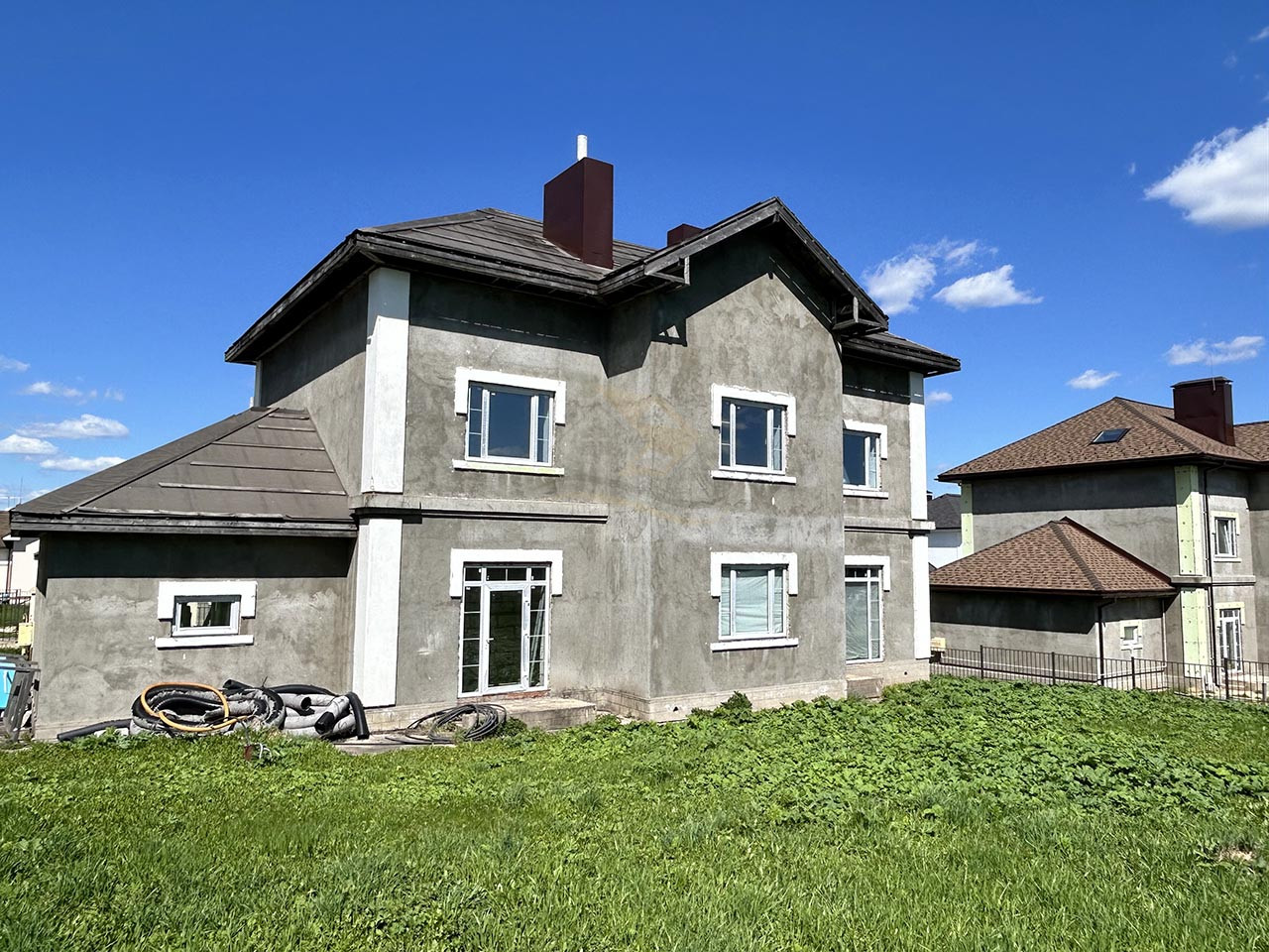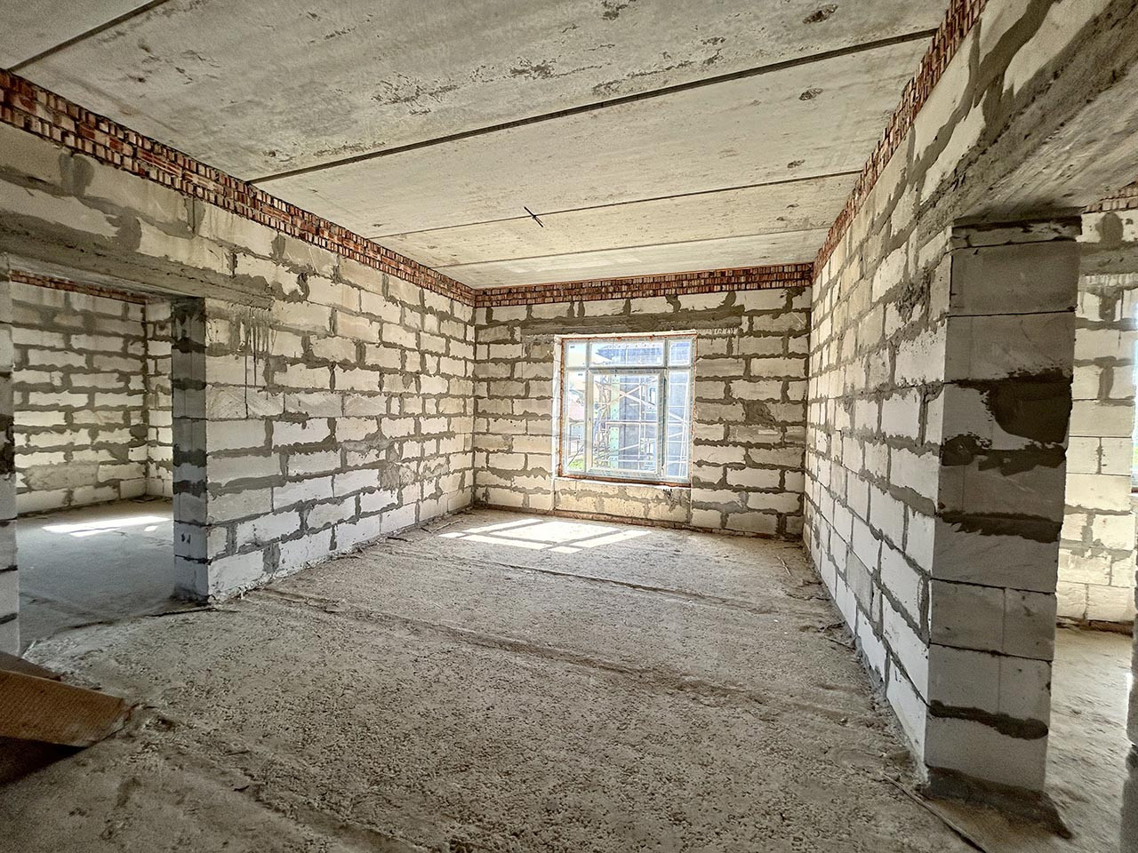 Конструктив дома: Фундамент - монолитный (ж/б армированная плита), стены - пеноблок, перекрытие - железобетонные плиты, окна – современные стеклопакеты ПВХ, кровля - мягкая.
