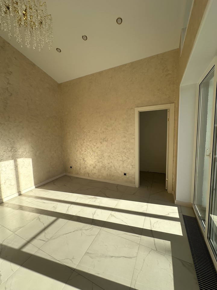 Планировкам: просторная прихожая с высокими потолками, оборудованная котельная комнат где можно установить дополнительный гостевой сан узел, 3 спальни в одной из которых расположилась вместительная гардеробная комната, большой совмещенный сан узел и конечно же главное место в доме это огромная кухня-гостиная с выходом на террасу, выходом на собственную террасу и высоченными потолками!
