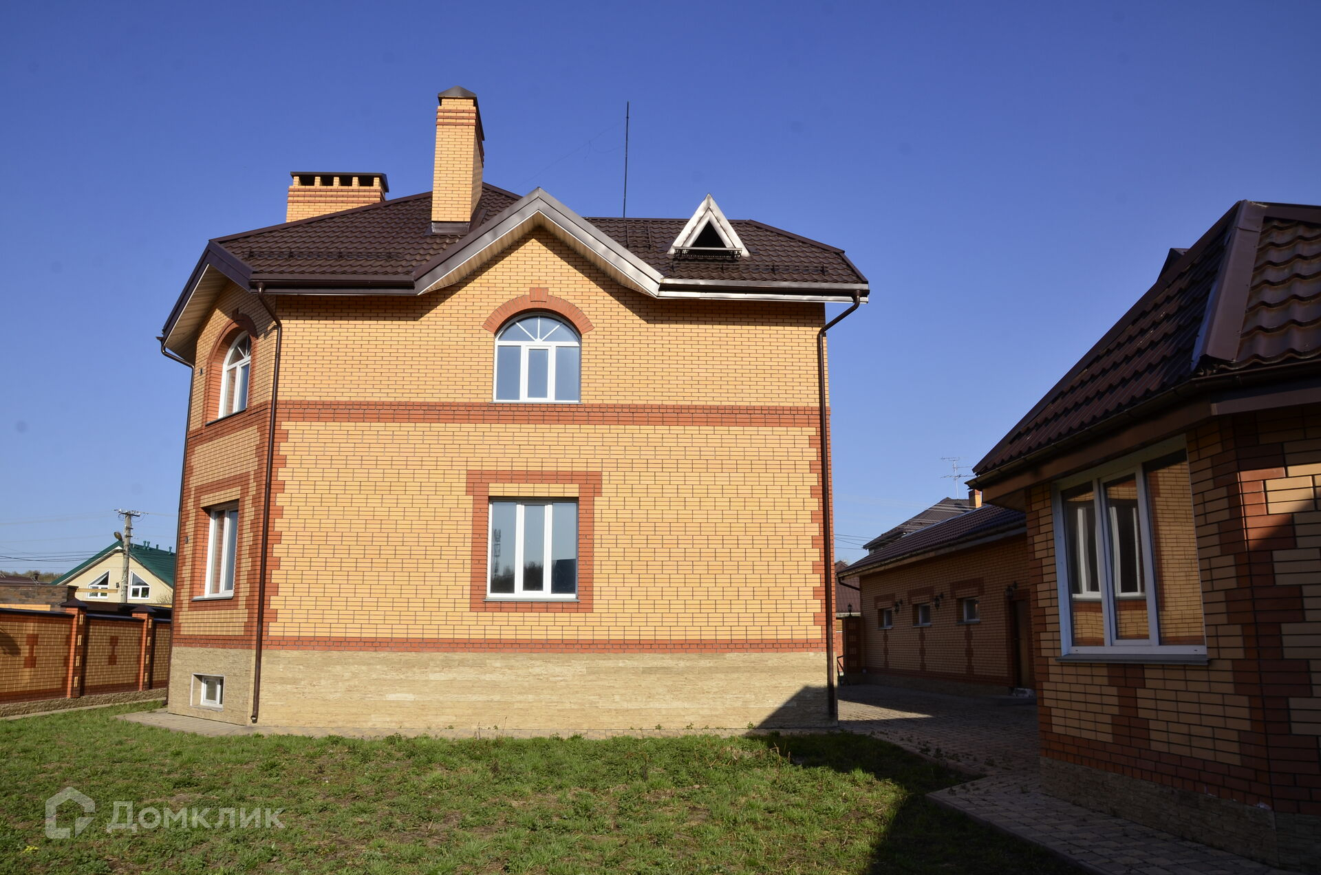 Территория дома обрамлена красивым, кирпичным забором с узором. 10 соток спокойствия и тишины, где вы сможете посадить любую садовую культуру или развести розарий.