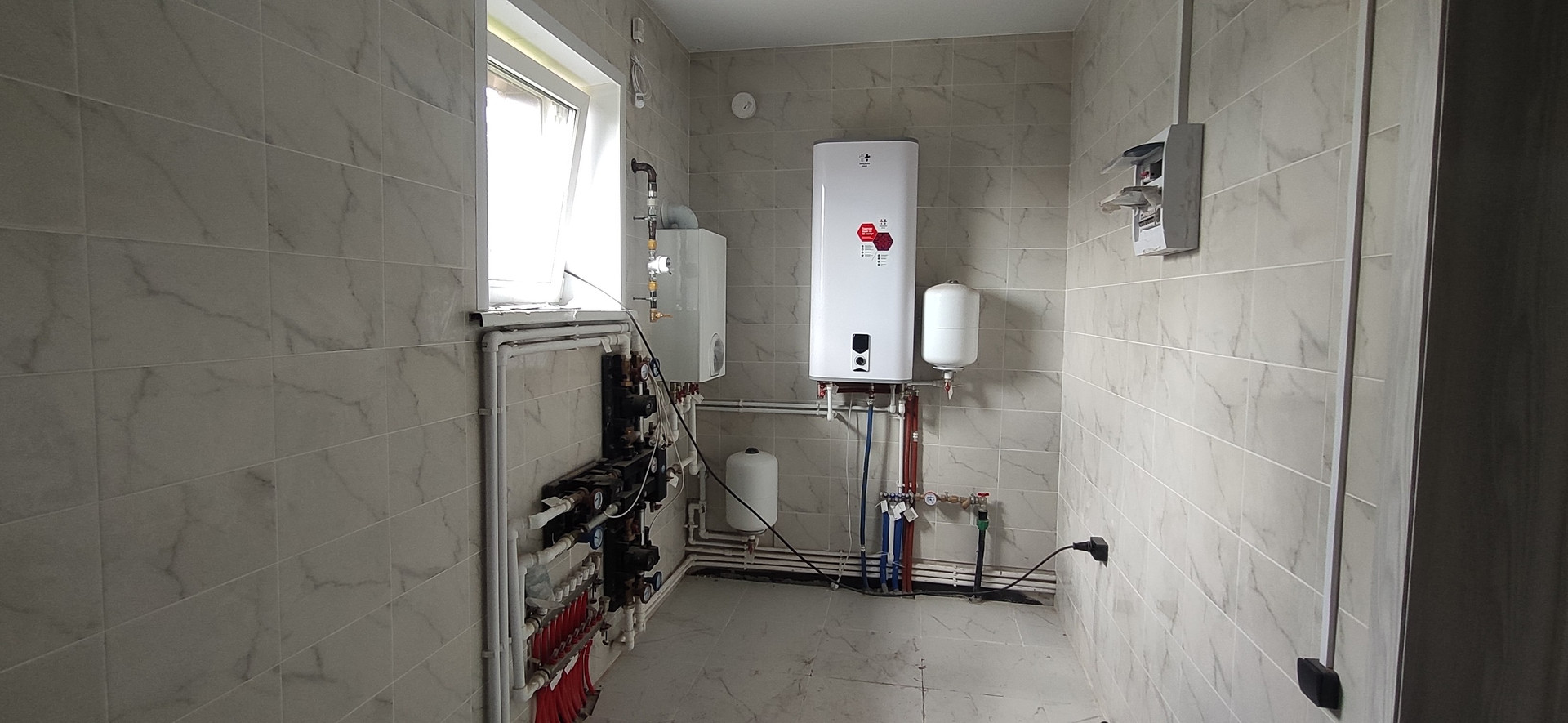 Коммуникации: центральные - вода, газ, электричество; канализация  септик.  Отопление  теплый пол 1 и 2 этаж.
