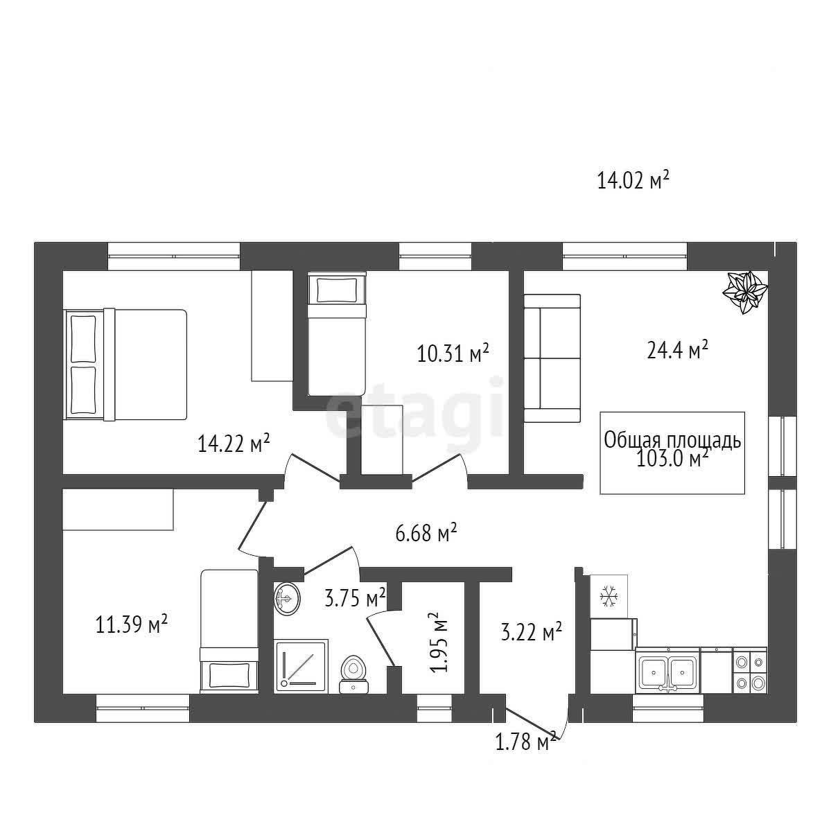 Общая площадь 103 м2