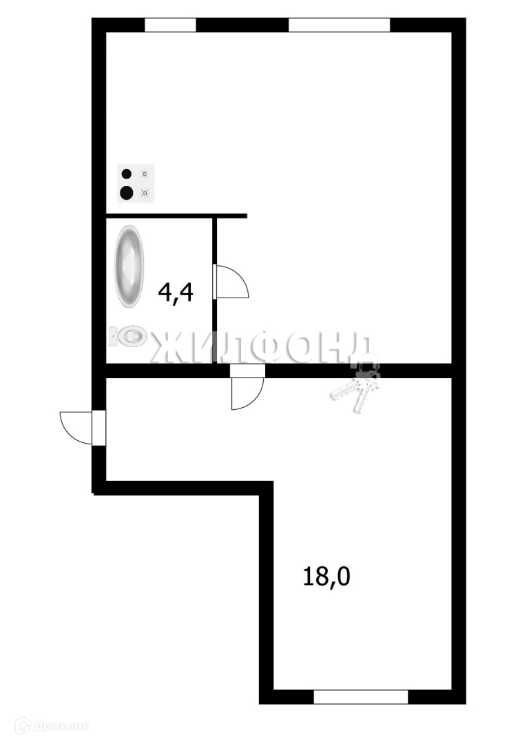 Жилая площадь 42.99 м2