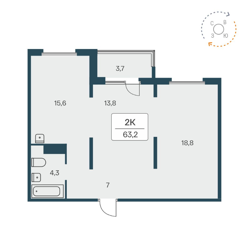 Общая площадь 63.2 м2