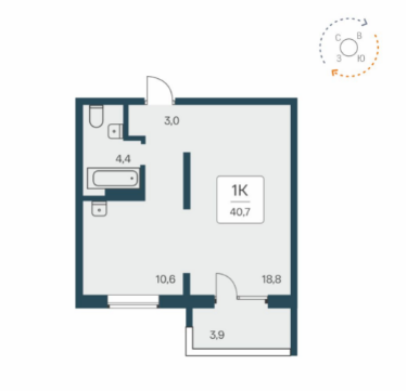 Общая площадь 40.7 м2
