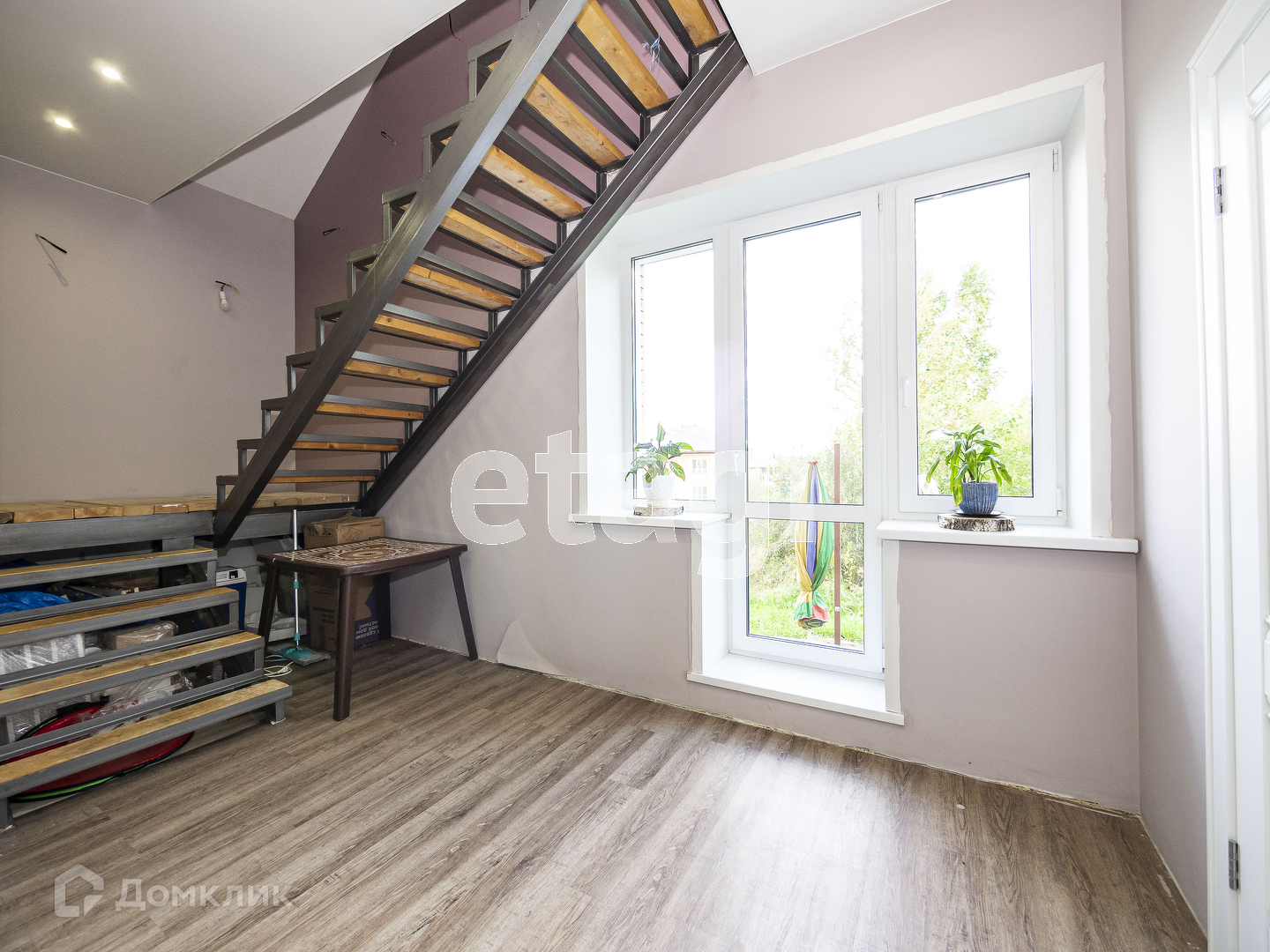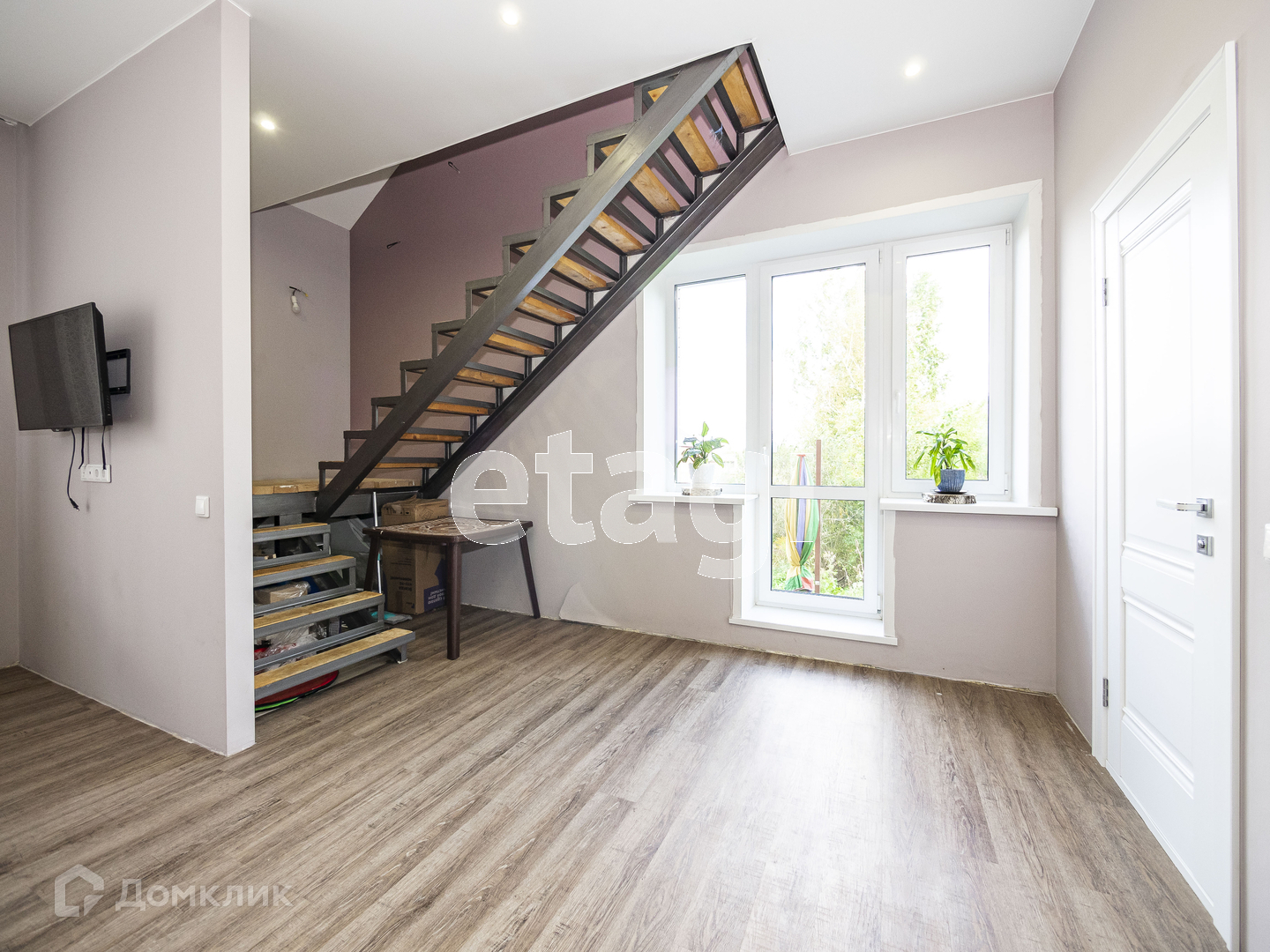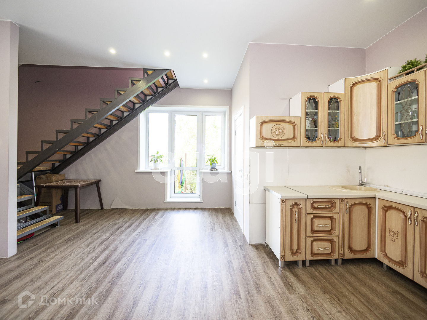 На первом этаже мы видим просторную и светлую кухню-гостинную (37 кв.м.) , площадь позволяет собираться большой компанией на семейные праздники или приглашать друзей на выходные. Интерьер выполнен в современном стиле. Продумано все до мелочей. Для комфортного проживания на первом этаже сделан теплый пол и положена кварцвиниловая плитка. Стены ровные и покрашены в приятный светлый оттенок. На потолках натяжной потолок с точечными светильниками, свет зонирован и предусмотрены переходные выключатели. На первом этаже гостевой туалет и душевая (4.7 кв.м.) . С первого на второй этаж поднимаемся по комфотной лестнице, под ней организовано пространство для хранения вещей. Лестница освещается и установлены переходные выключатели.