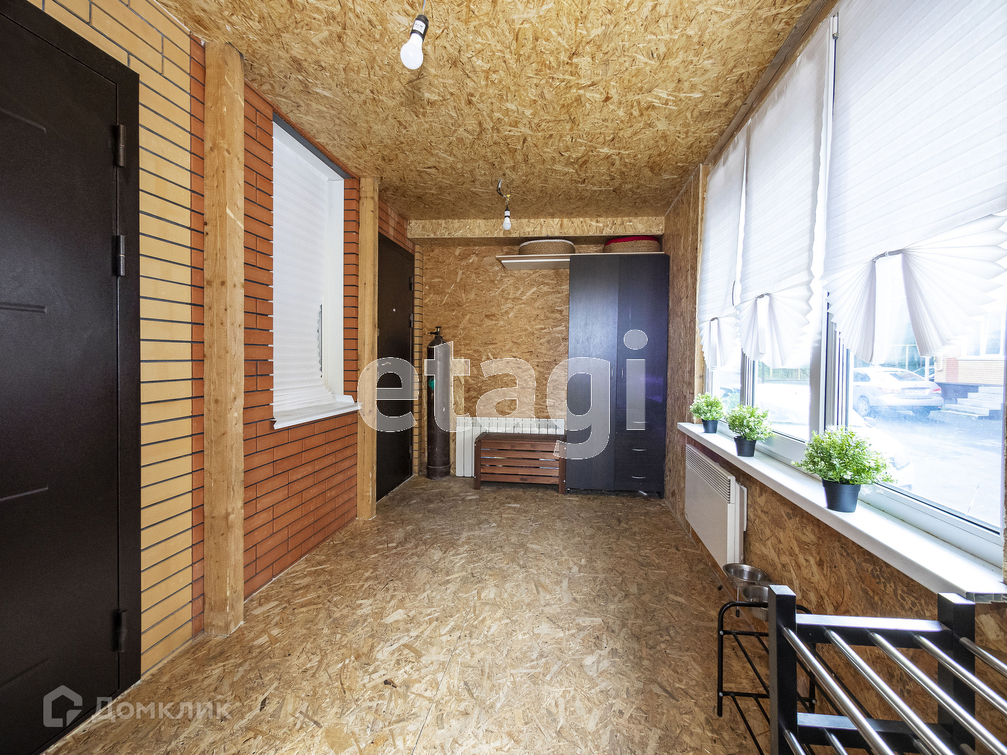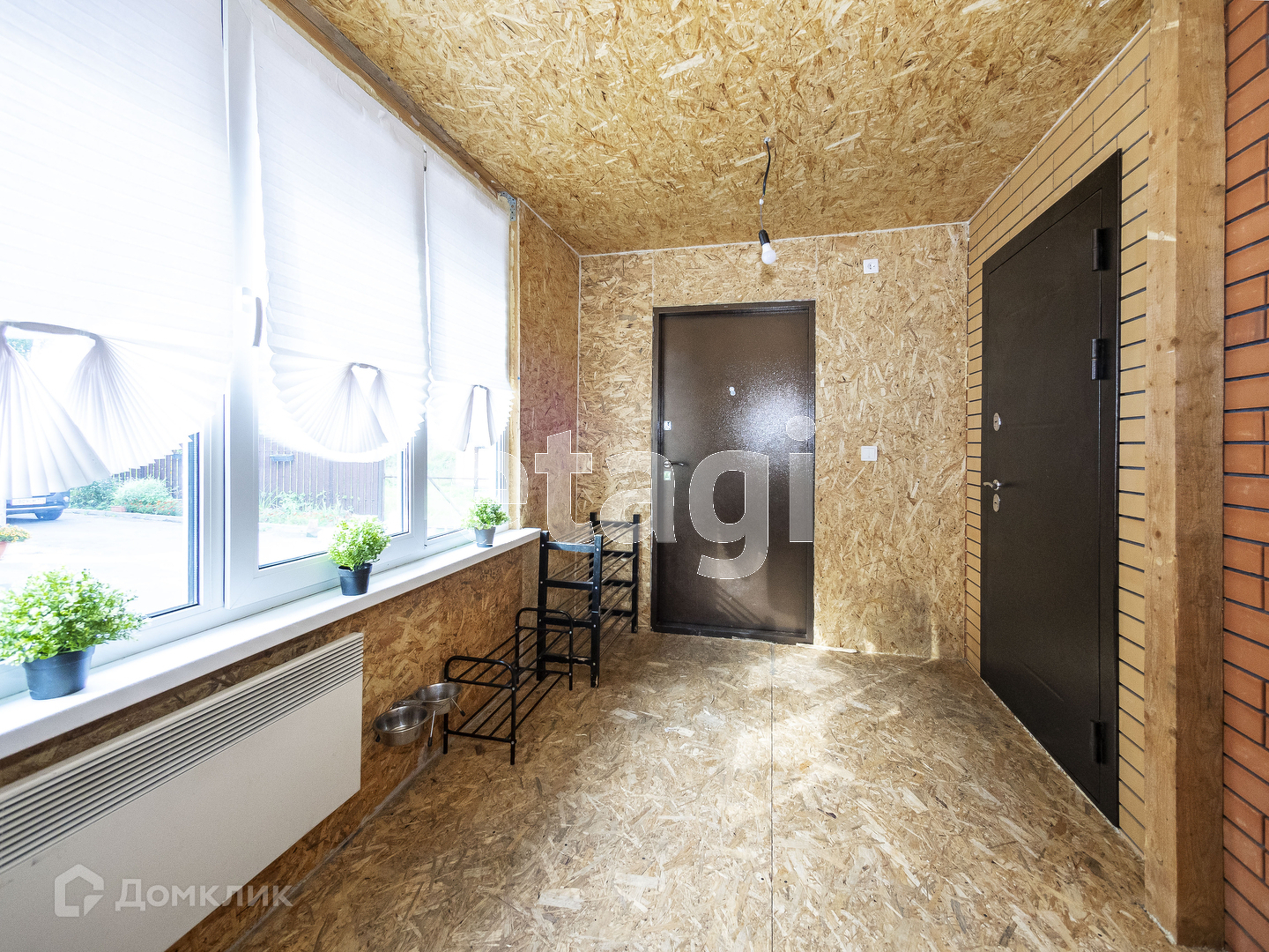 Общая площадь Танхауса 90 кв.м. При входе в танхаус мы видим просторную веранду, она утеплена. Из веранды вход в дом и в котельную. В котельной (3.3кв.м.) стоит газовый котел и организовано место для хранения вещей.
