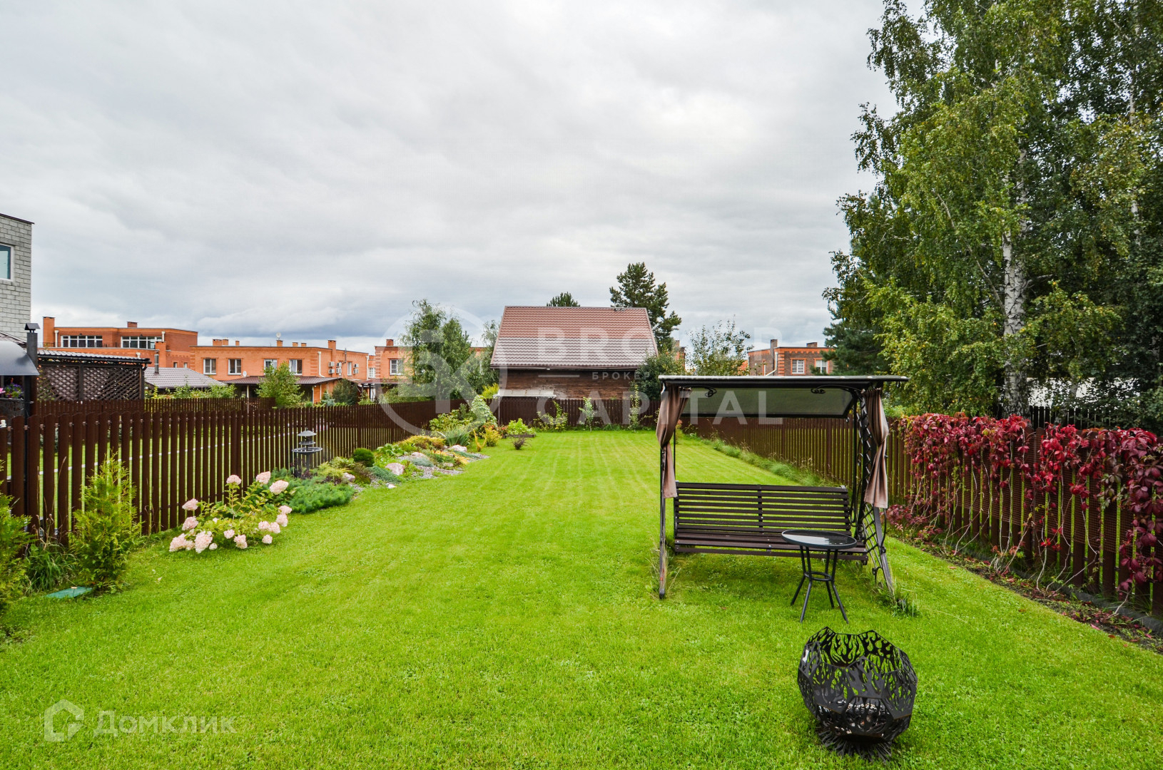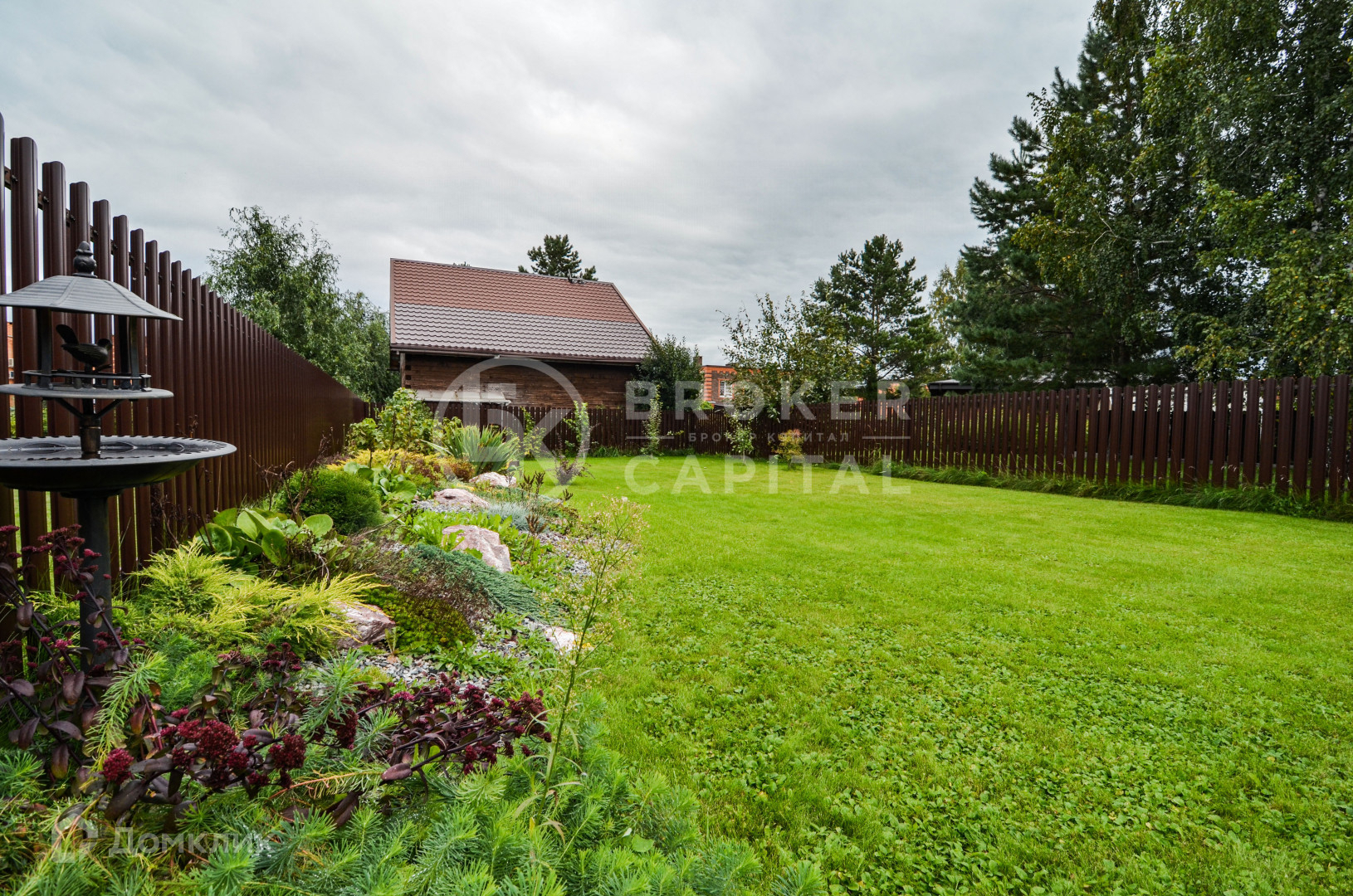 Участок облагорожен газоном и цветами, авто полив.