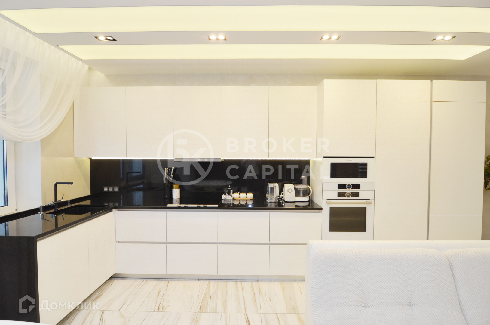 Духовой шкаф, микроволновка, посудомойка Bosch, плитка индукционная и вытяжка Siemens, два встроенных холодильника.