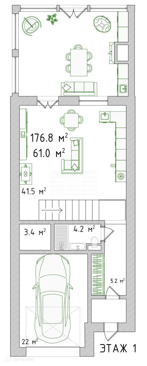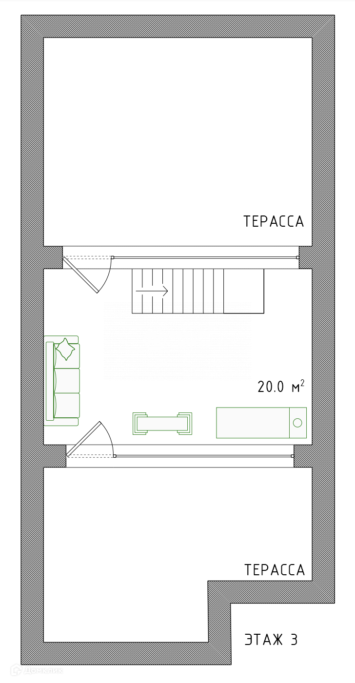 2 террасы 31.1 кв. м и 22.2 кв. м.