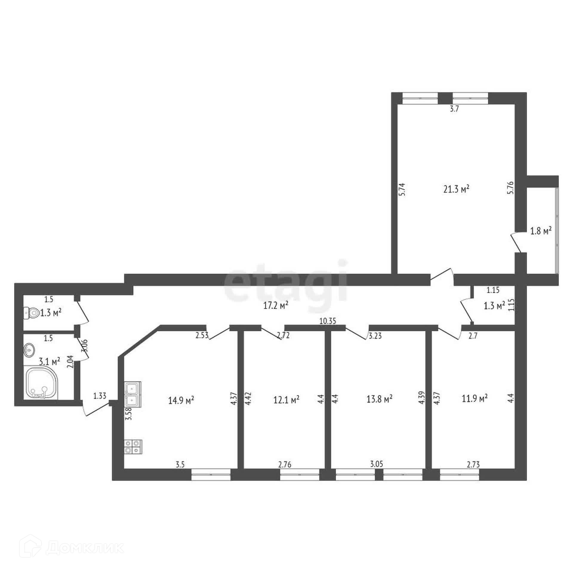 Общая площадь 96.9 м2