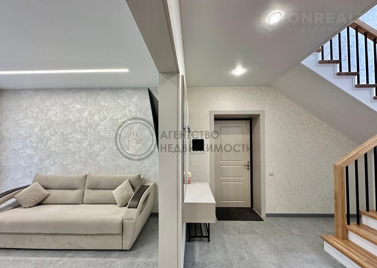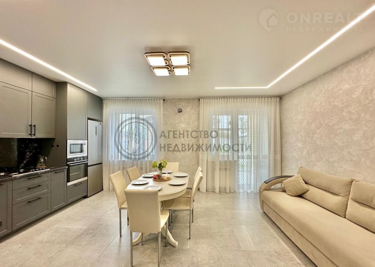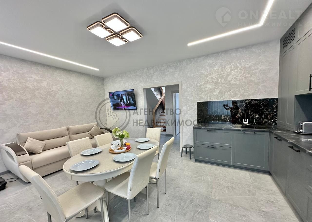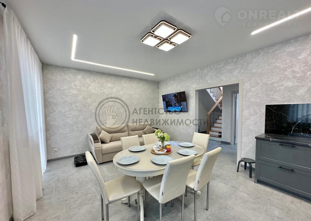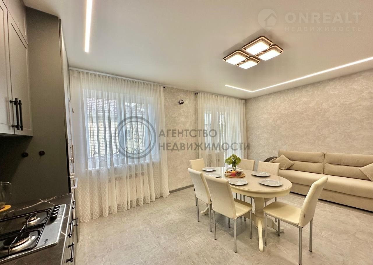 НА ПЕРВОМ ЭТАЖЕ: Из светлой уютной прихожей вы попадаете в просторную гостиную, совмещенную с кухней. На кухне большой комфортный кухонный гарнитур, продумано до мелочей для приятной готовки. Кухня очень светлая за счет двух больших окон. Обеденная зона расположена по центру, это позволяет удобно разместиться всем членам семьи. Зона гостиной имеет панорамное остекление, что придает особую атмосферу для отдыха. Также на первом этаже расположена спальня , в которой могут разместиться супруги или можно сделать гостевую комнату. На этаже есть большая ванная комната. По всему первому этажу теплый пол.