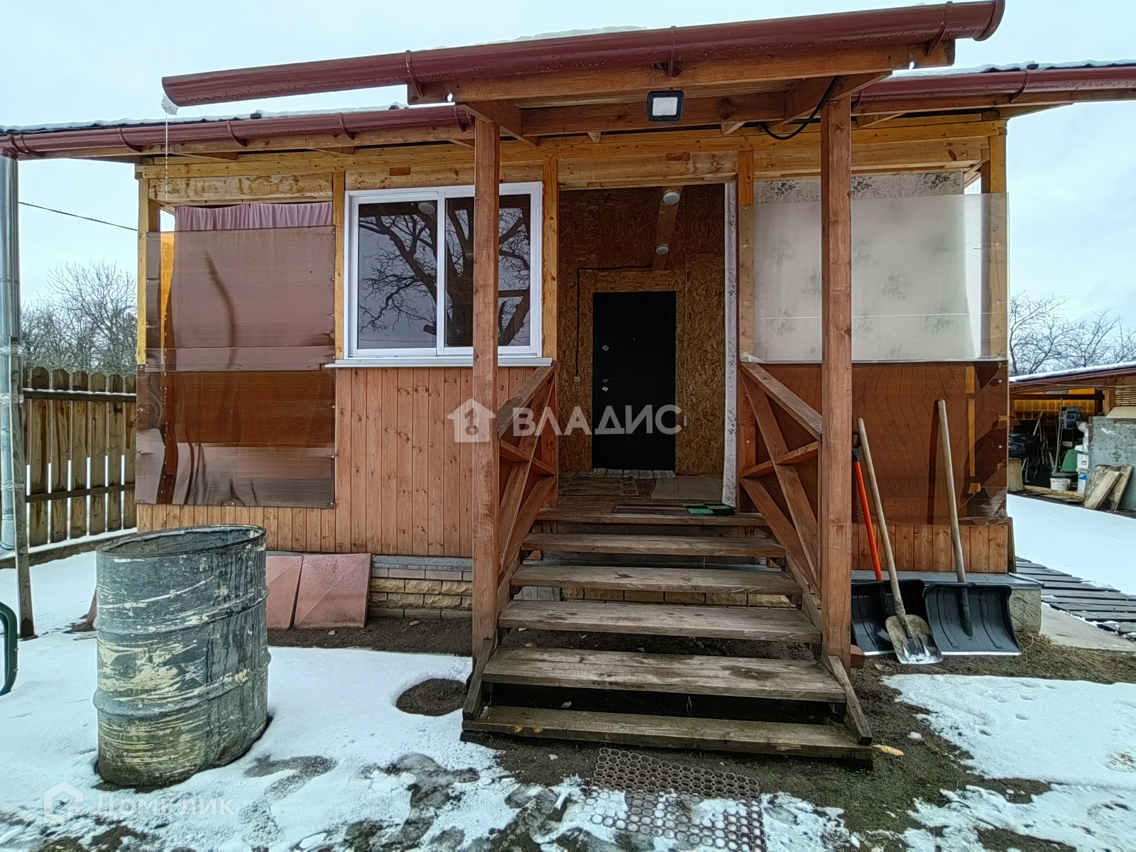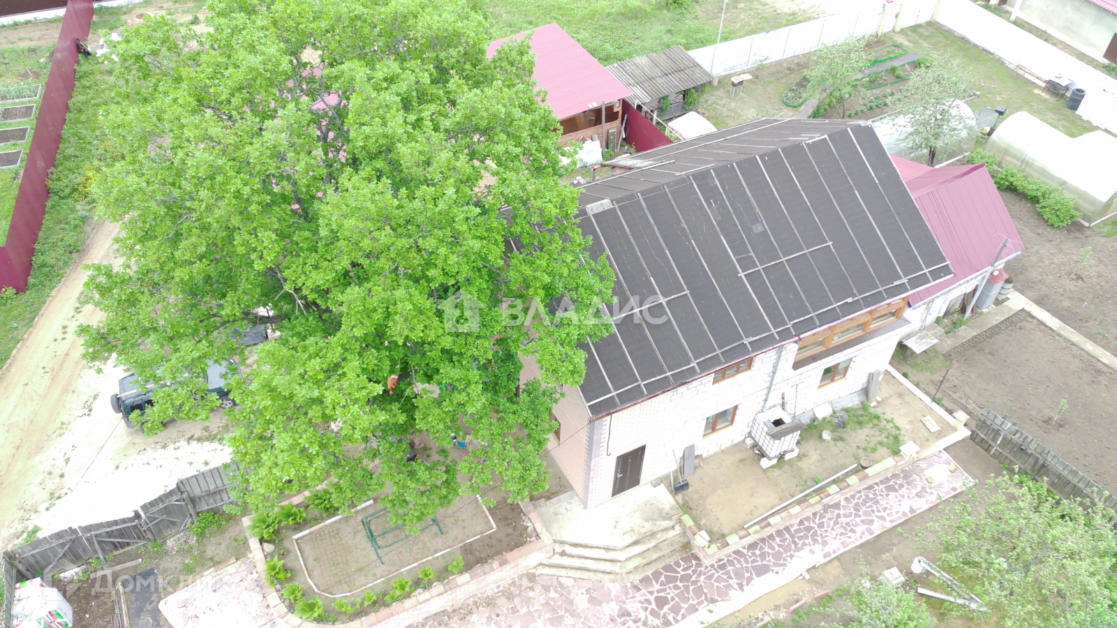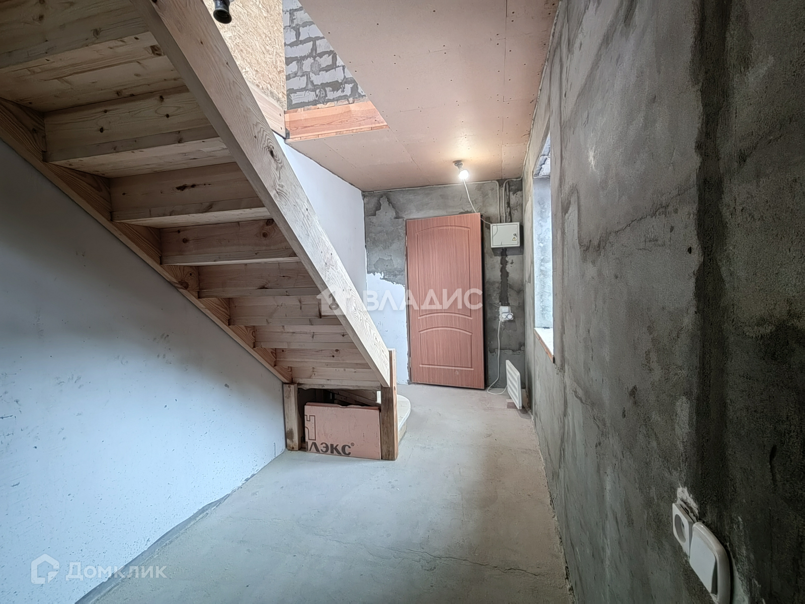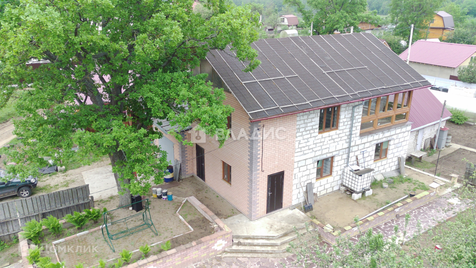 Дом полностью построен, имеет частичную отделку: залит тёплый пол, проведена новая проводка, двери, стеклопакеты, деревянная лестница, стены обшиты гипсокартоном. В доме 2 санузла (на первом и втором этаже). Имеется помещение, у которого две стены выполнены из стеклопакетов, подходящее для зимнего сада. Для удобства жителей, объект имеет несколько выходов: парадный, в сад и в гараж, который пристроен к дому.