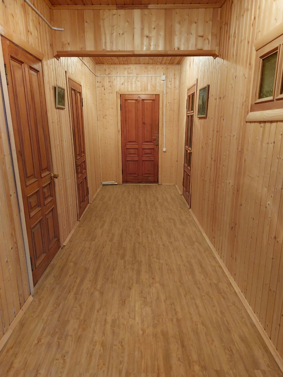 Дом построен из бруса, утеплен. Крыша двускатная, перекрыта профлистом.  В комнатах стены и потолок обшиты вагонкой, на полу линолеум.  Во всех комнатах  установлены пластиковые окна.