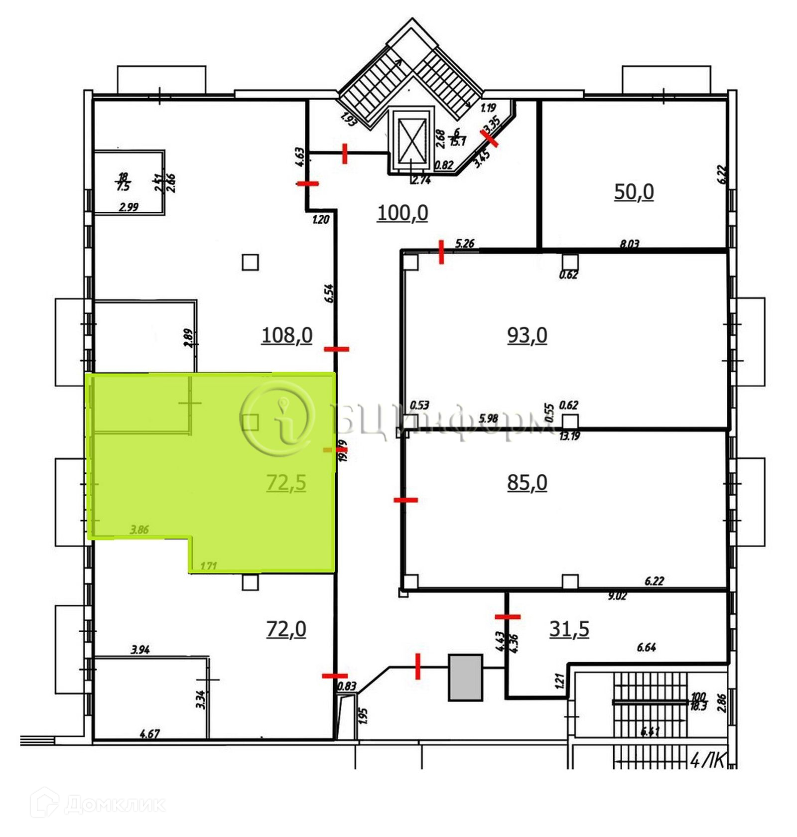 Общая площадь 72.5 м2