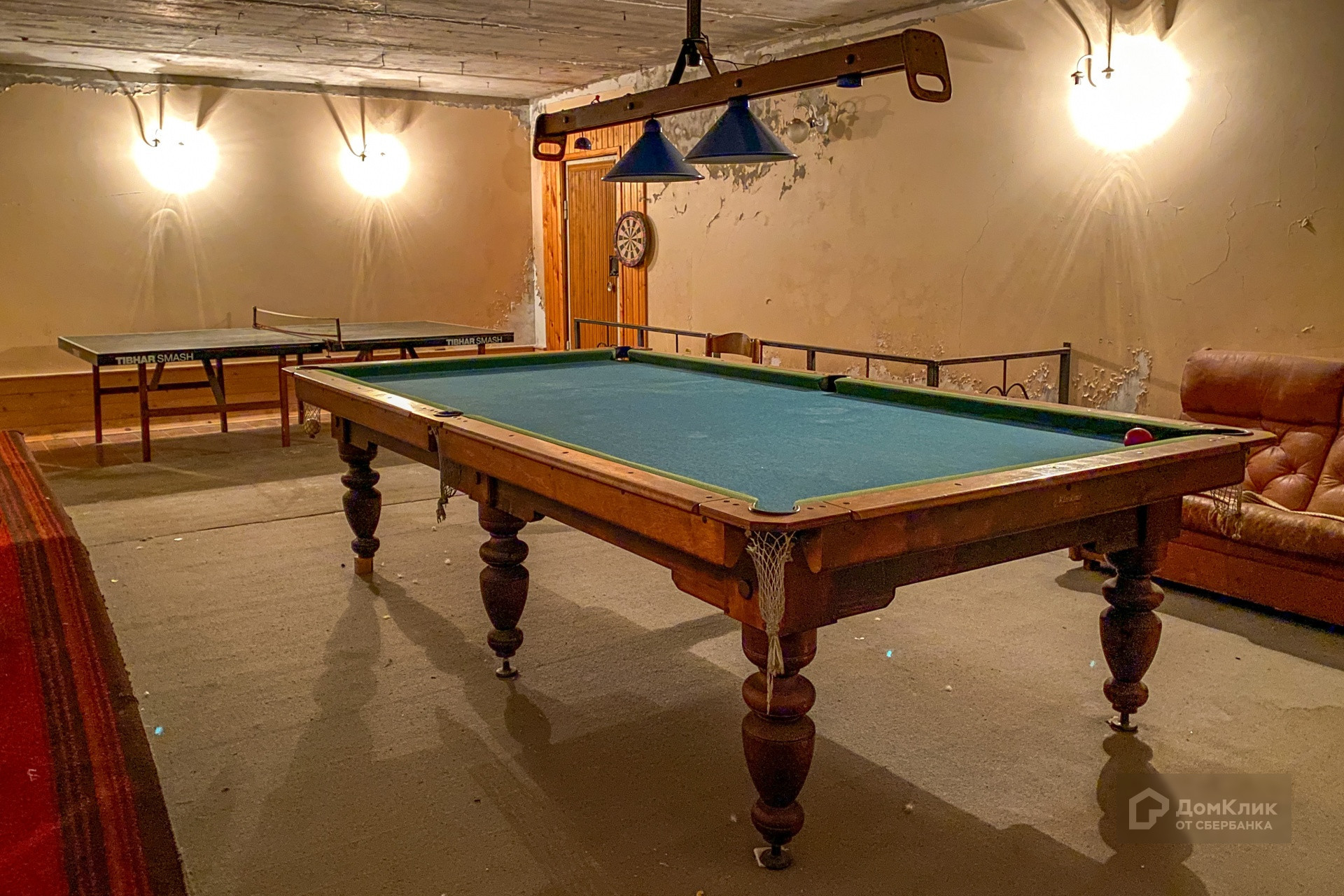•На цокольном этаже есть баня, помывочная, комната отдыха с камином, комнаты для игры в настольный теннис и бильярд и котельная с выходом на задний двор к зоне барбекю. Также оборудован погреб, в котором вы можете хранить множество провизии.