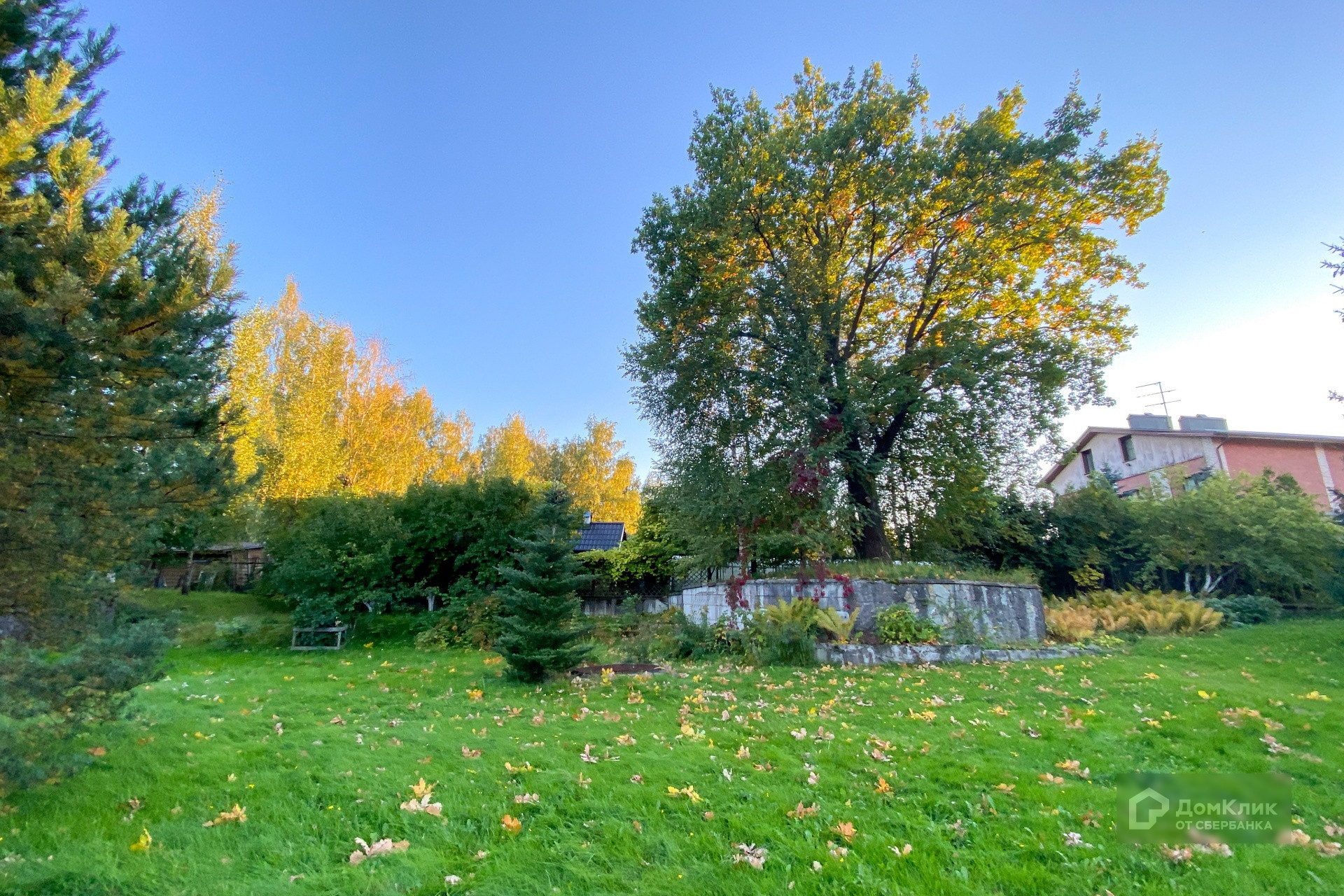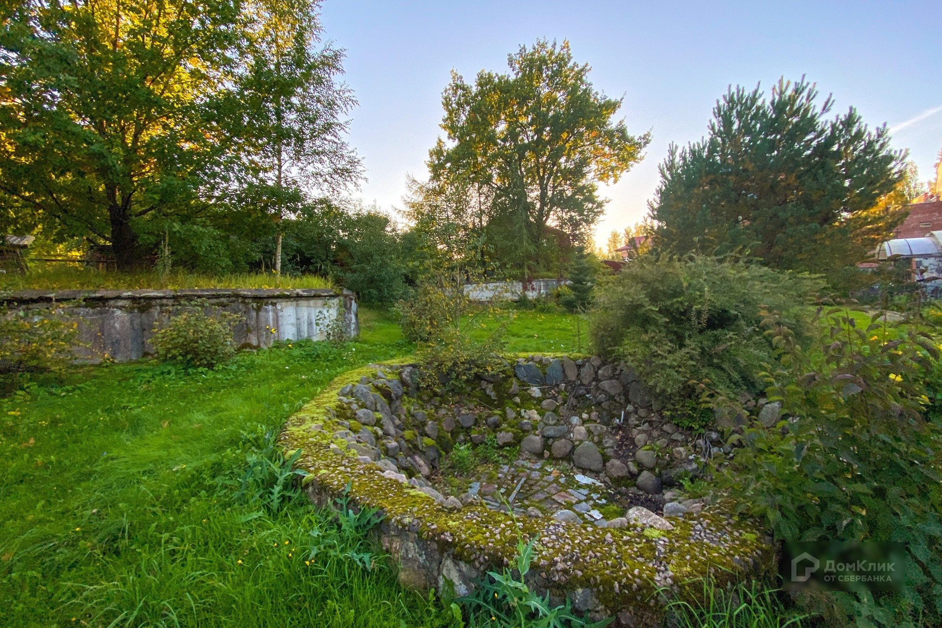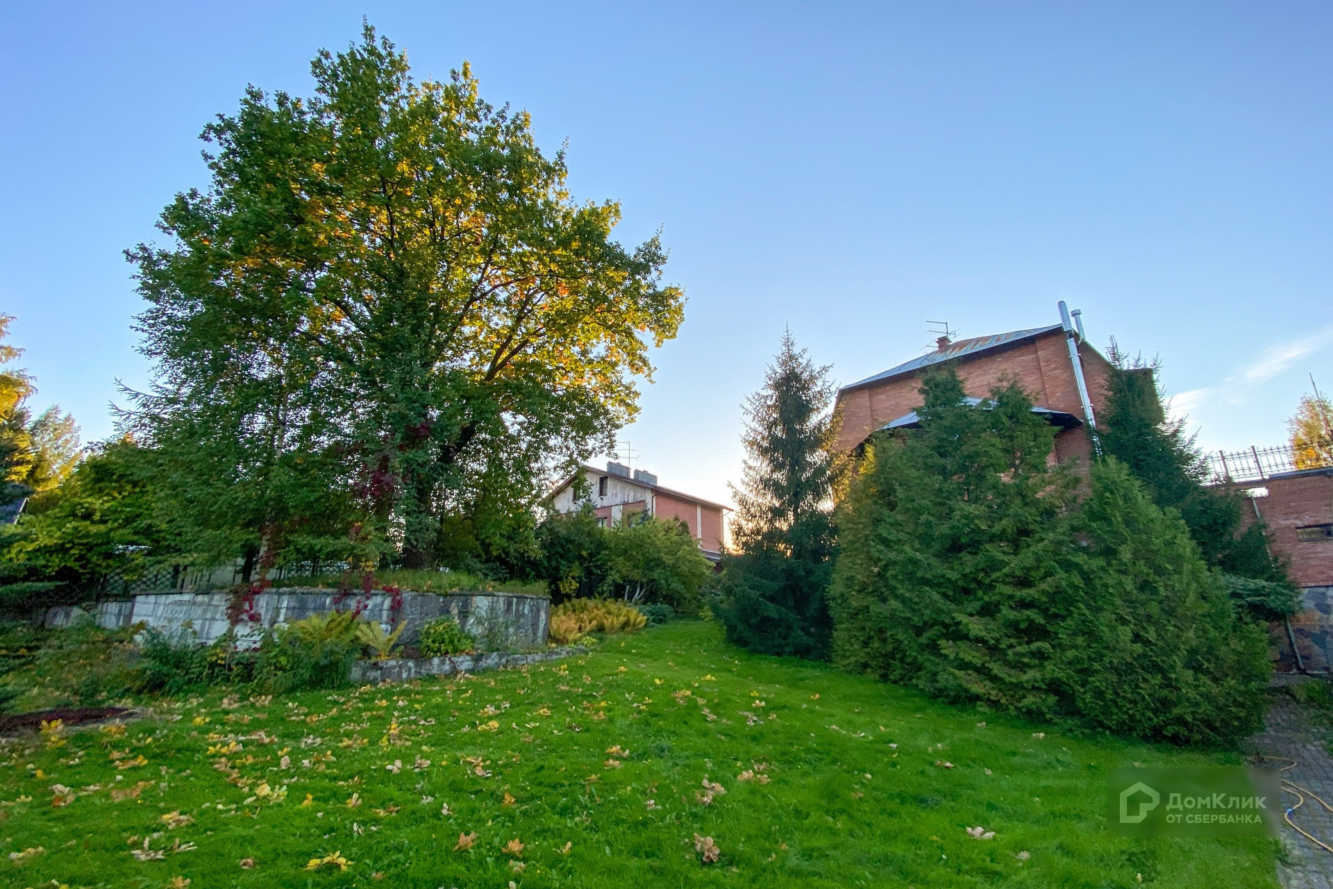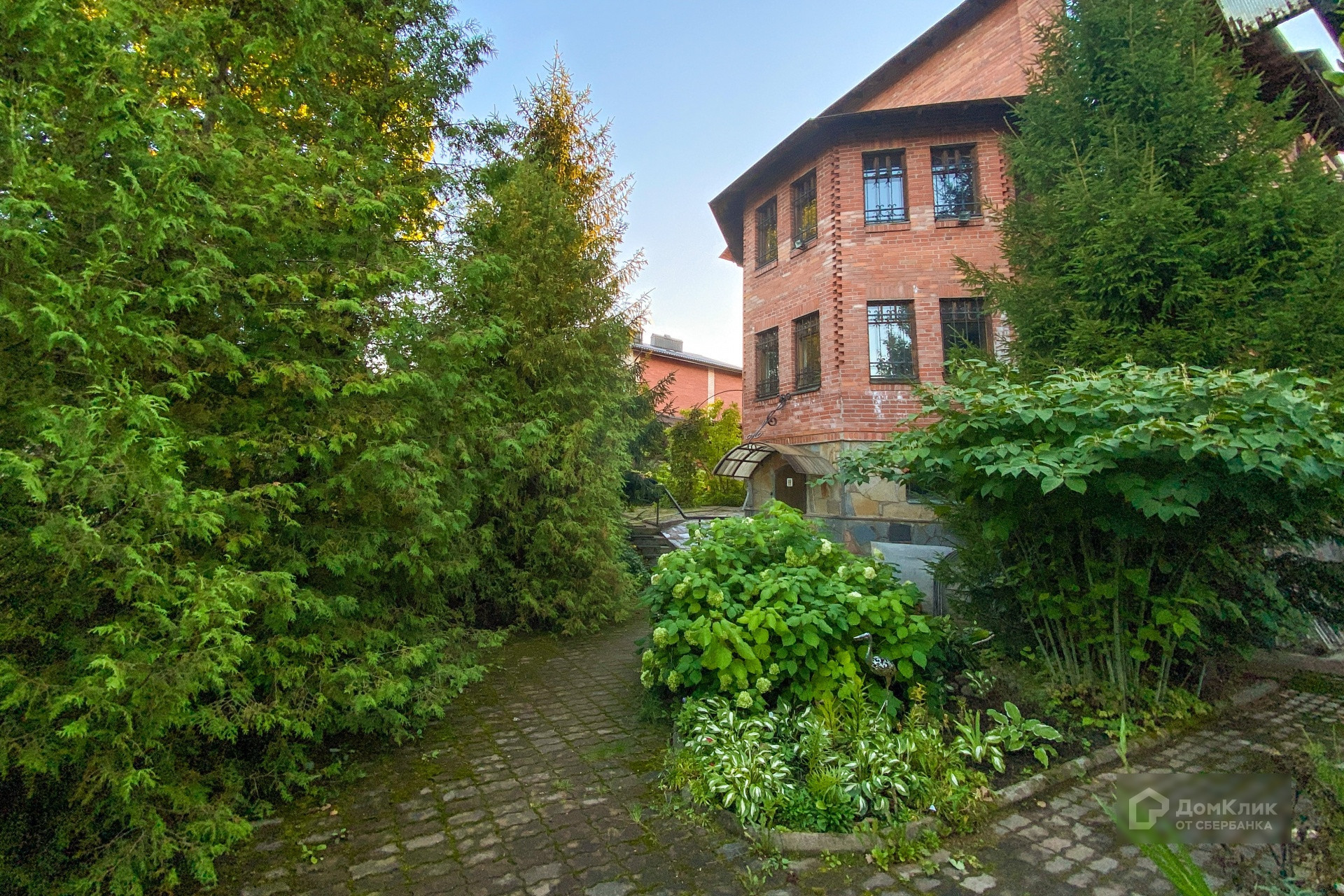 Расположен на участке 24 сотки с мощением, красивым ландшафтом, хвойными деревьями, каменной купелью, зоной барбекю и натуральным газоном.