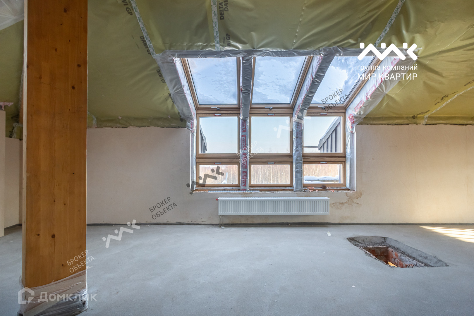 Мансарда: люксовый деревянный профиль VELUX Woodline двухкамерный стеклопакет, профиль начинается от самого пола и уходит под потолок - потрясающий вид на Шуваловский парк.