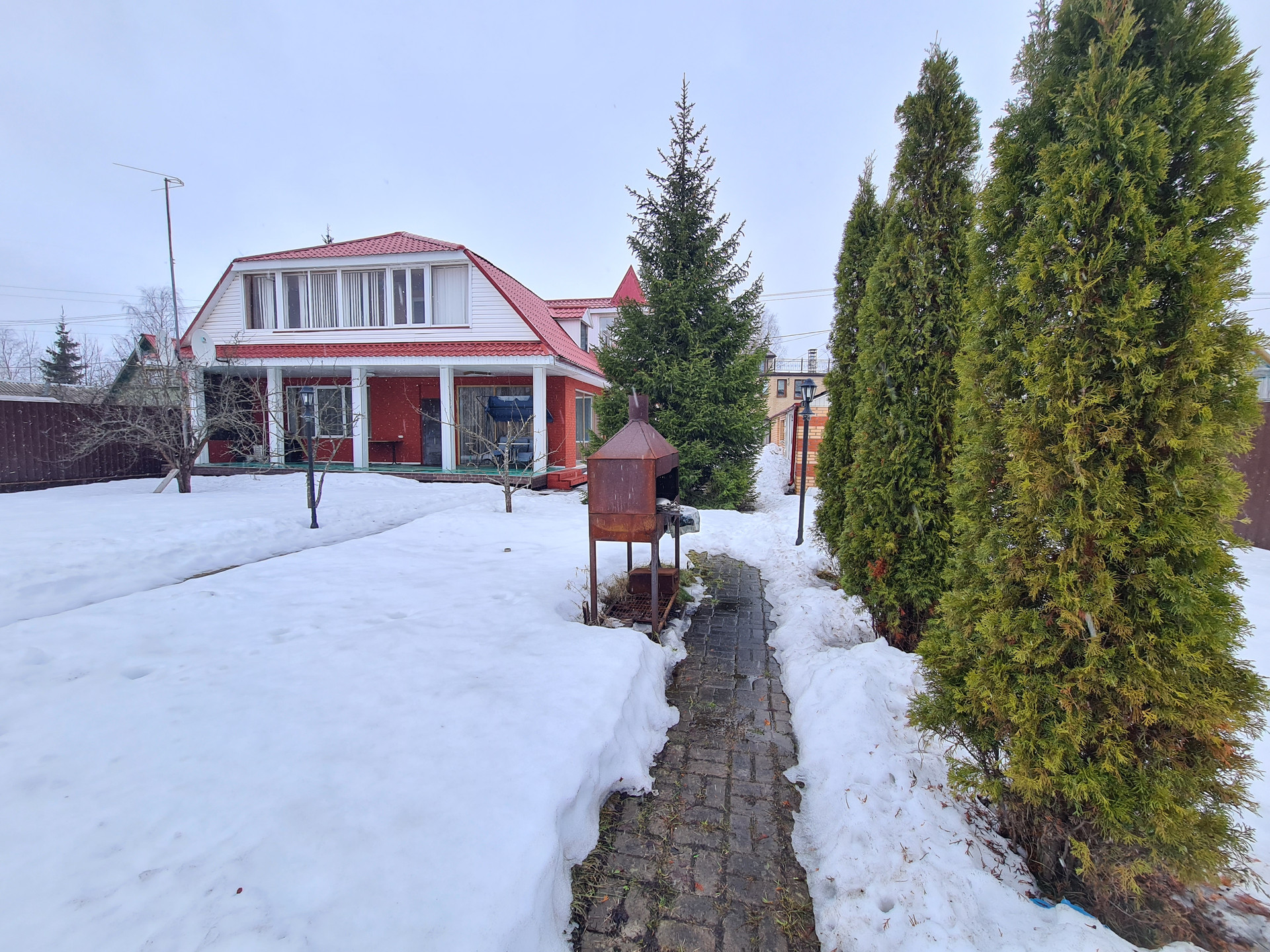 • Прилегающая к дому территория выложены брусчаткой. Ворота на участок с калиткой.