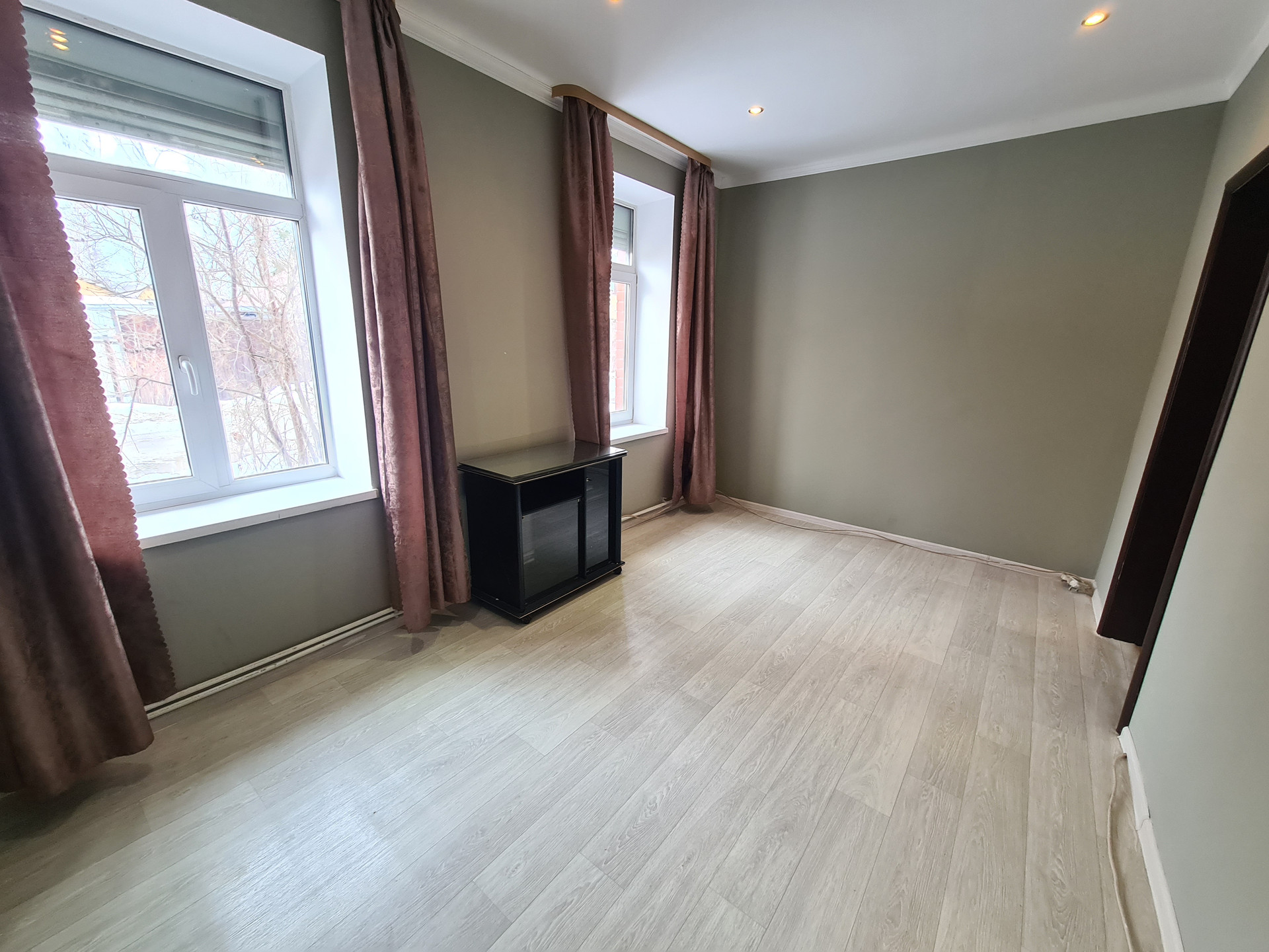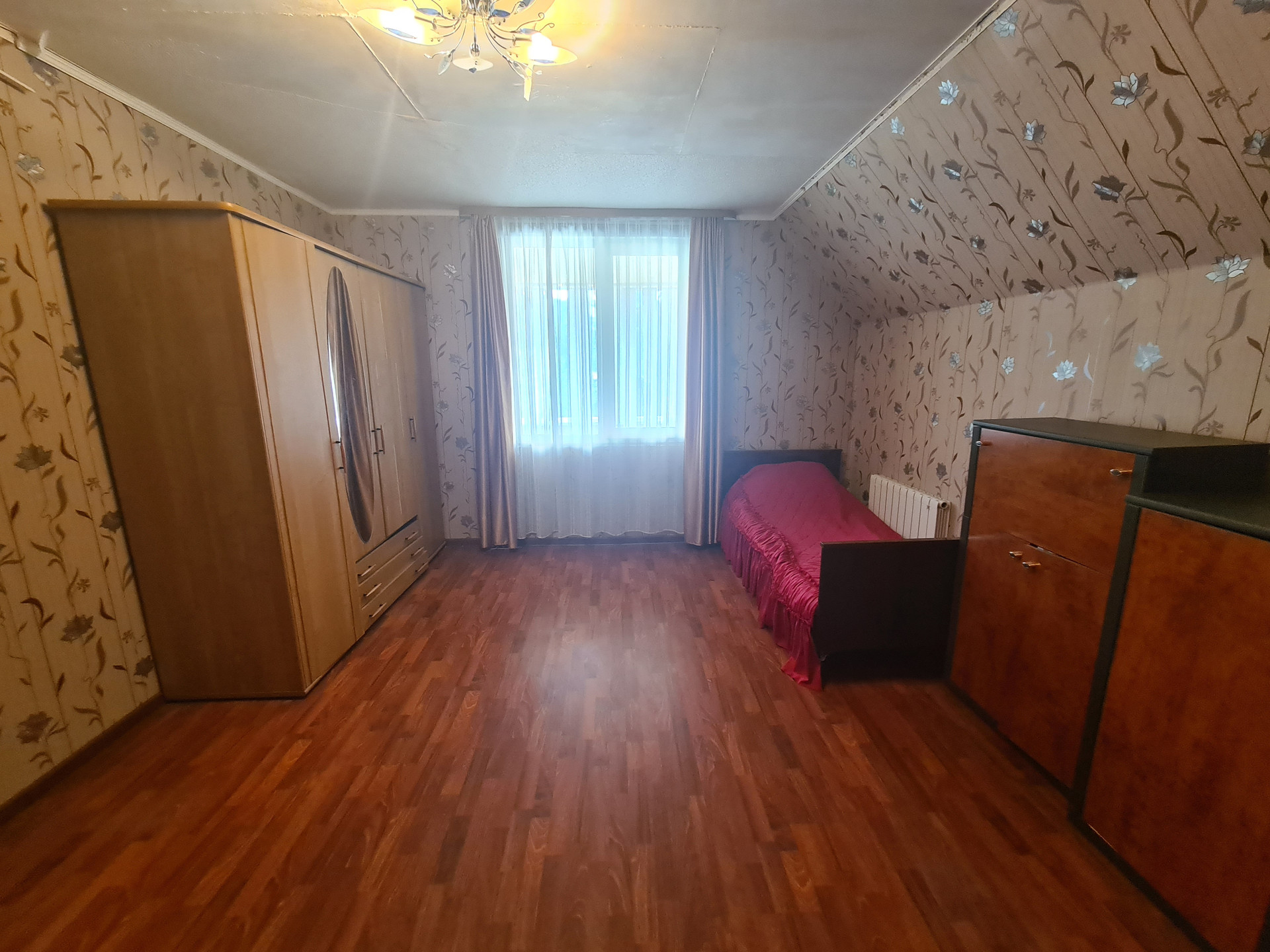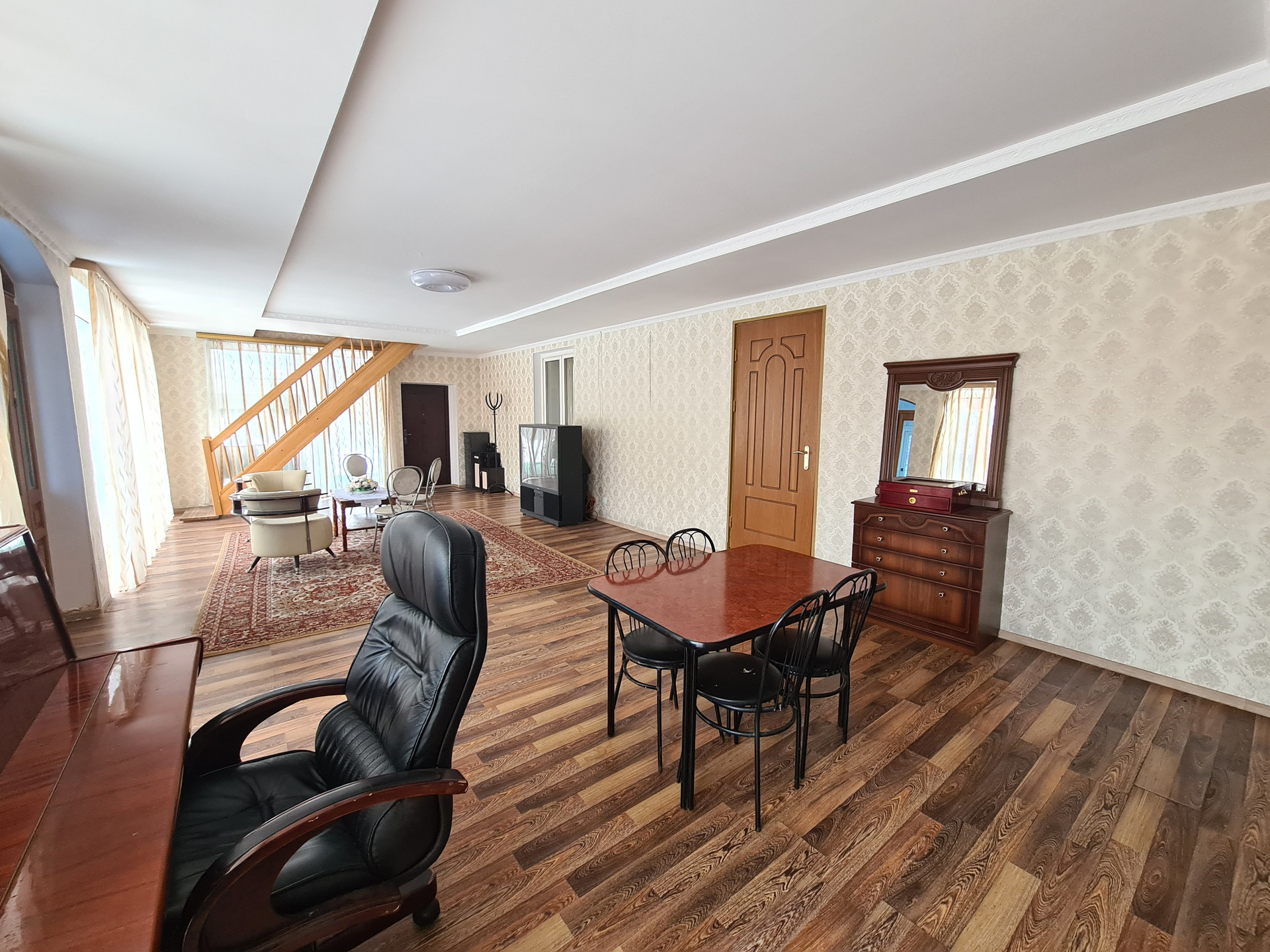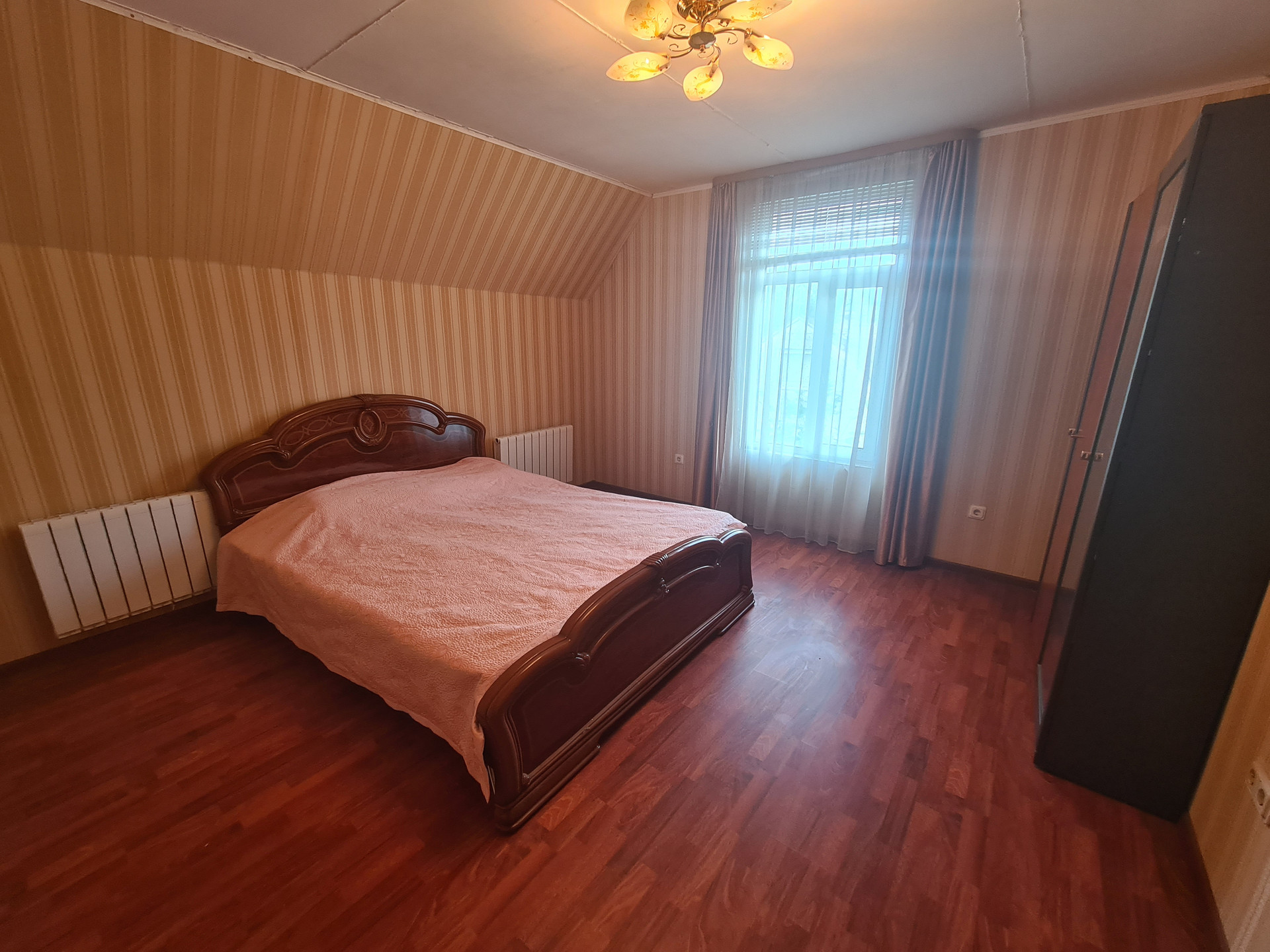• 2й этаж: холл 33 кв.м., комнаты 18+15+15 кв.м. изолированные, из холла выход на балкон 17.9 кв.м., помещение под сан.узел 4.7 кв.м. Высота потолков 2.75 метра. Потолки гипрок. Полы ламинат, кафель. Лестница на 2-й этаж деревянная.