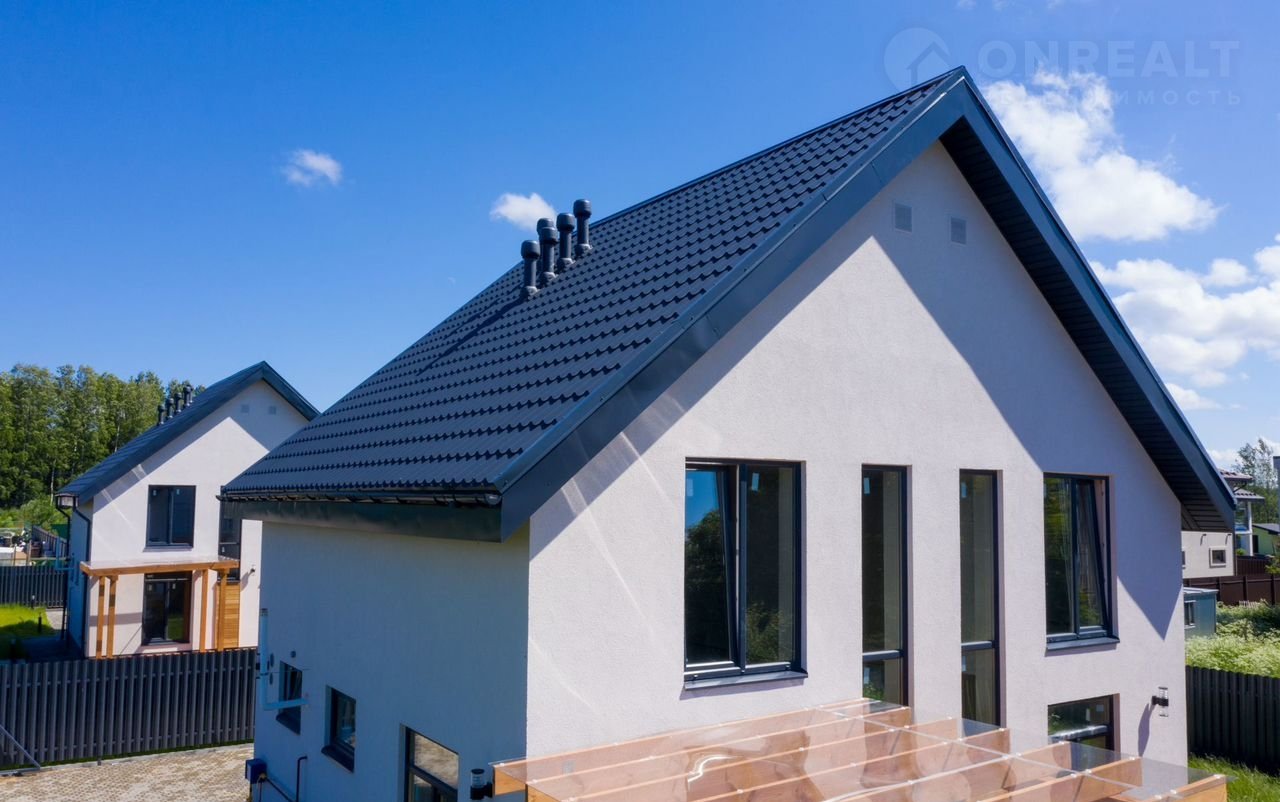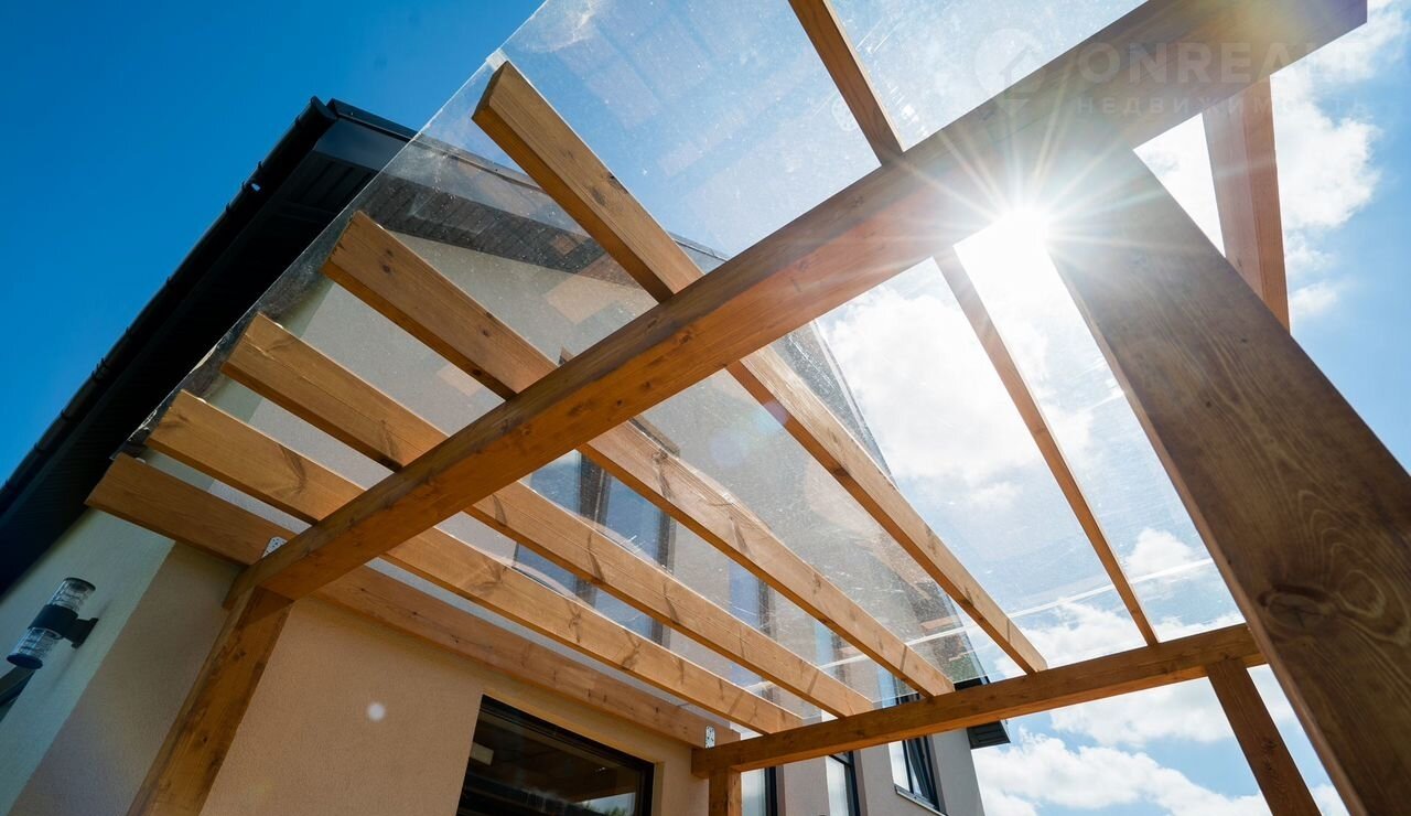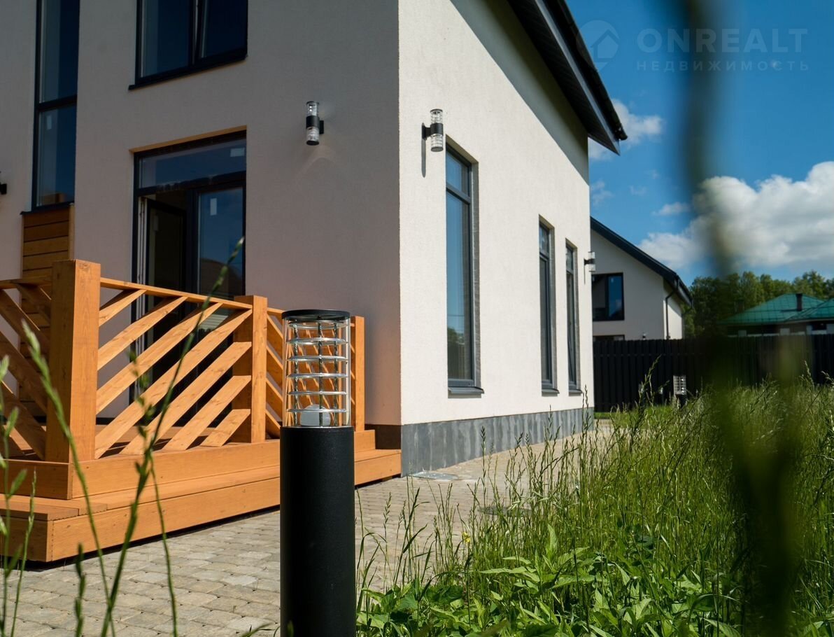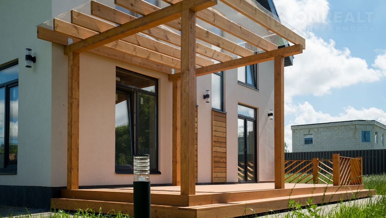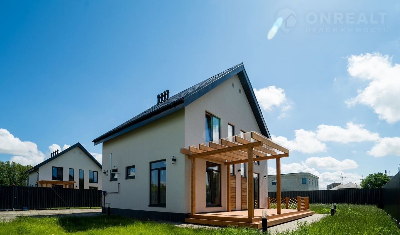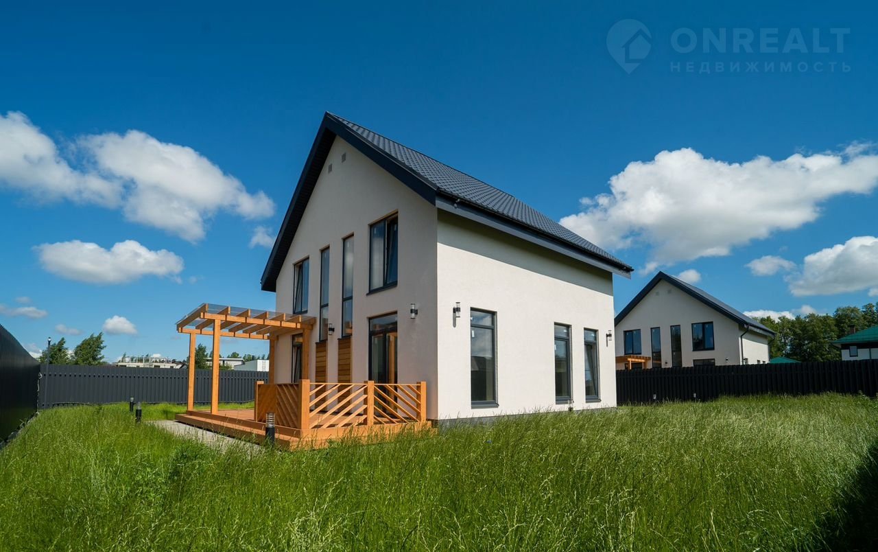 В доме просторная кухня-гостиная 30м², 4 спальни, 2 санузла - есть все для для современной комфортной жизни семьи. Панорамные окна, видовой балкон и просторная красивая функциональная терраса из бруса 28,8 м²