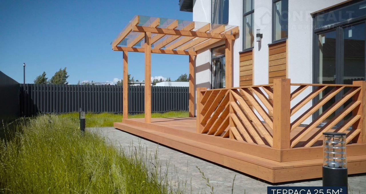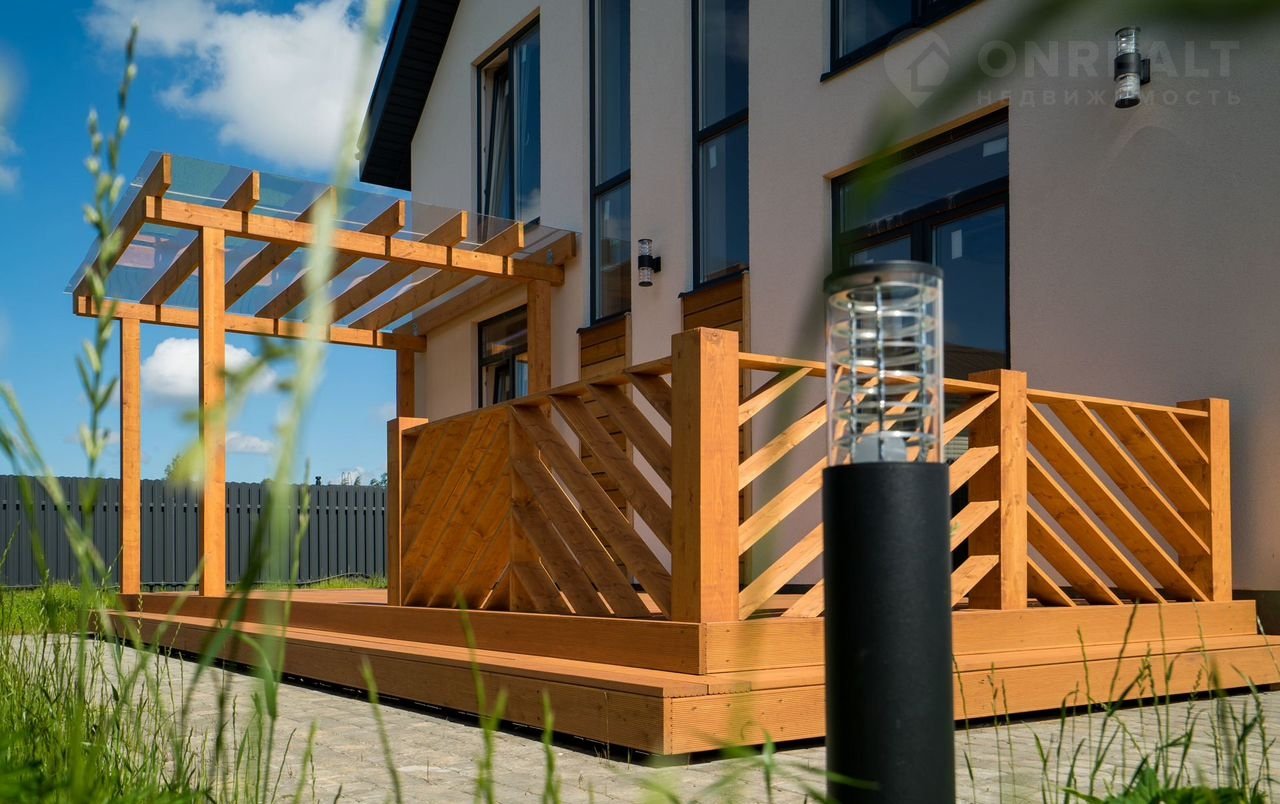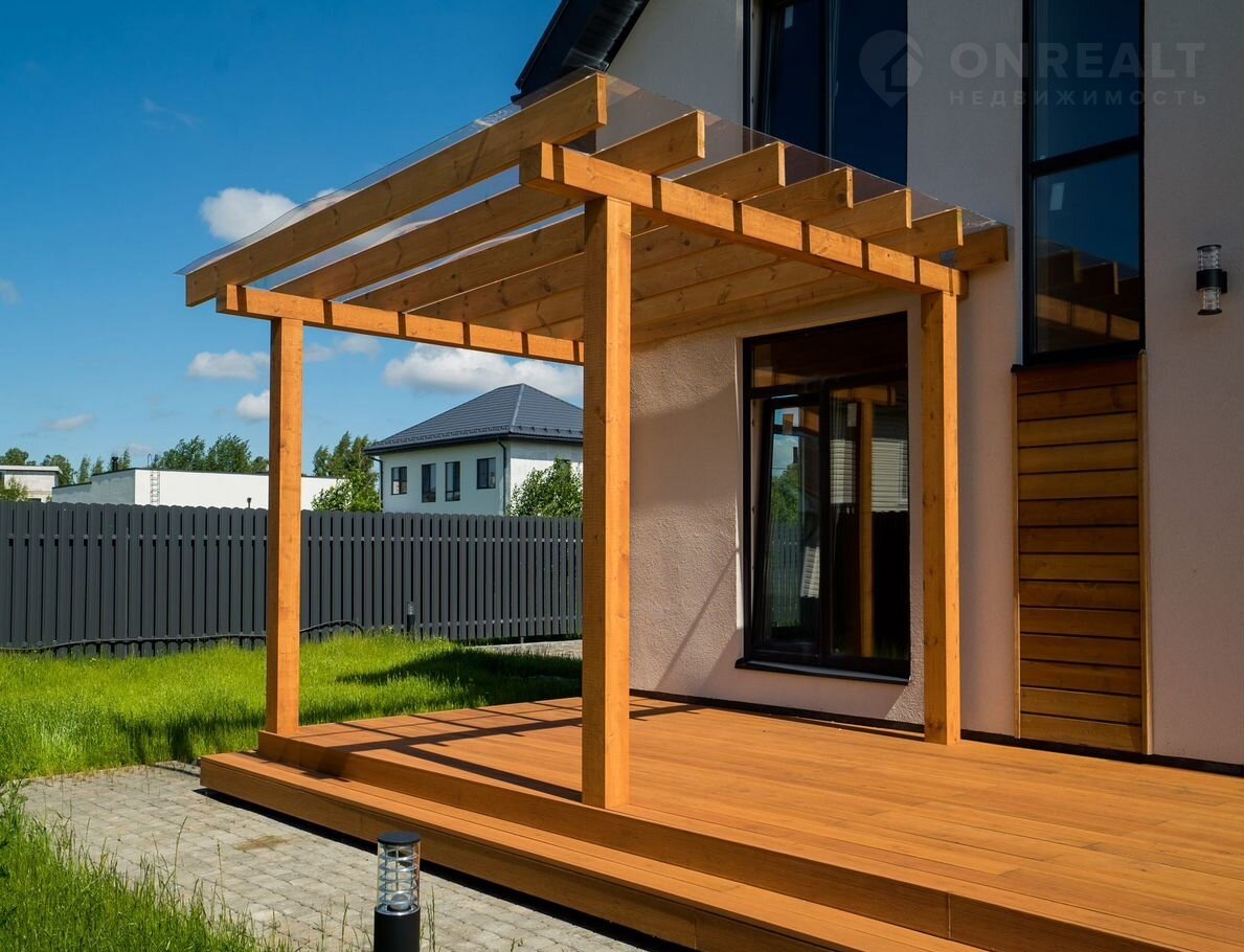 В доме просторная кухня-гостиная 30м², 4 спальни, 2 санузла - есть все для для современной комфортной жизни семьи. Панорамные окна, видовой балкон и просторная красивая функциональная терраса из бруса 28,8 м²