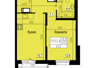 Общая площадь: 41.7 м2