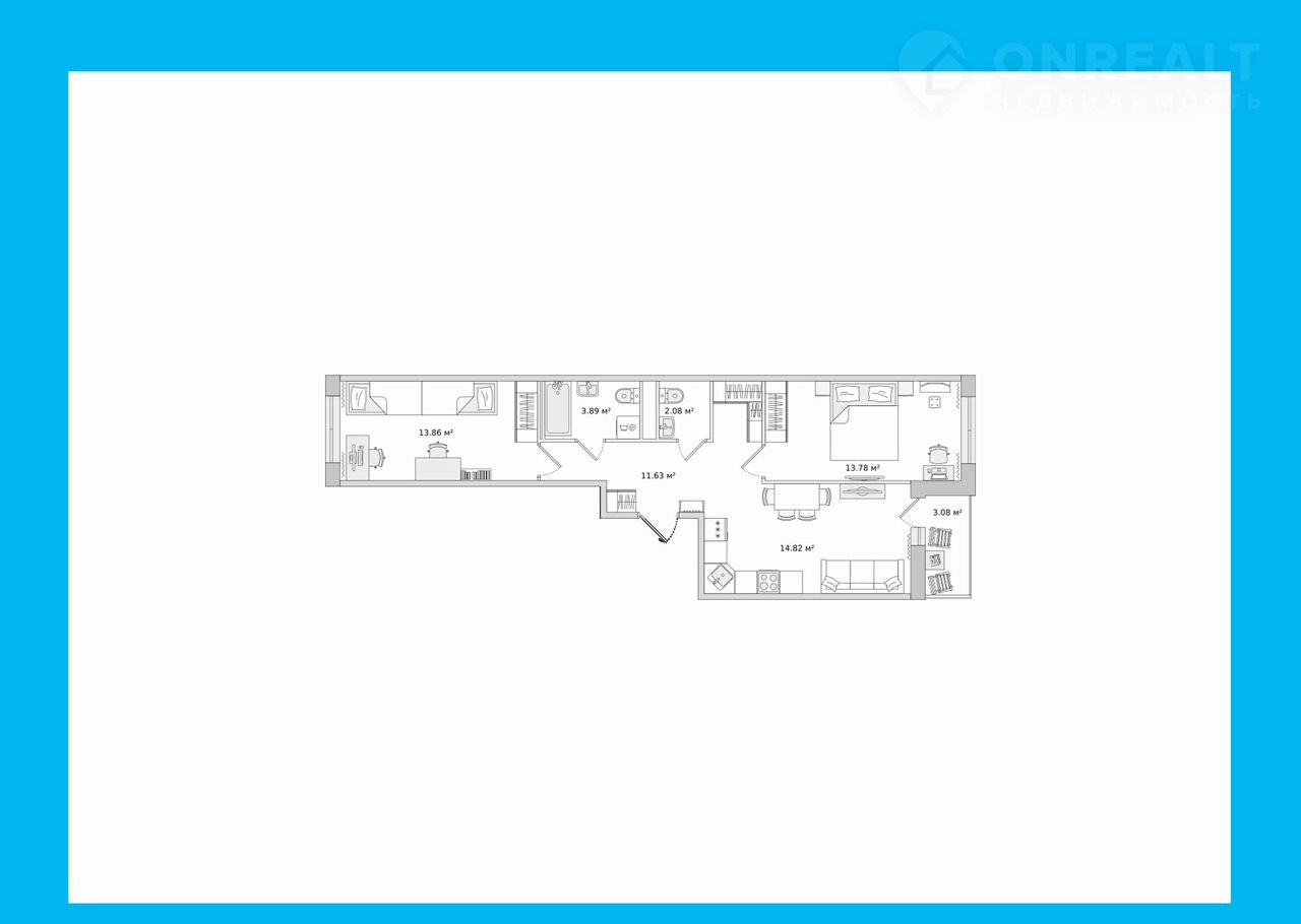 Общая площадь 59.2 м2