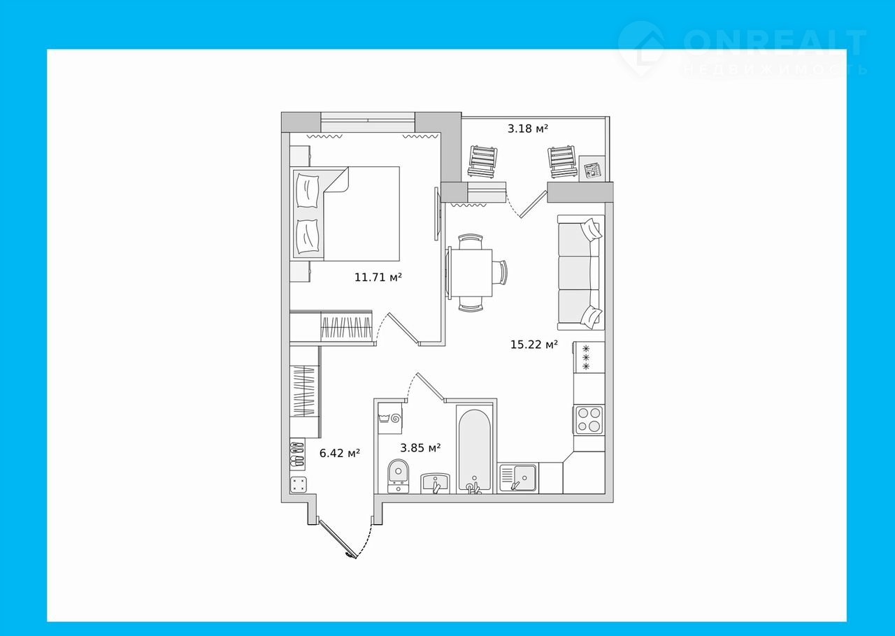 Жилая площадь 11.7 м2