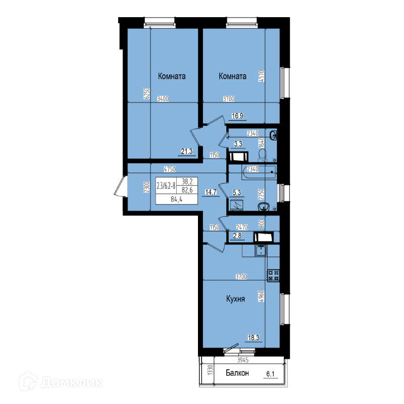 Общая площадь 82.6 м2