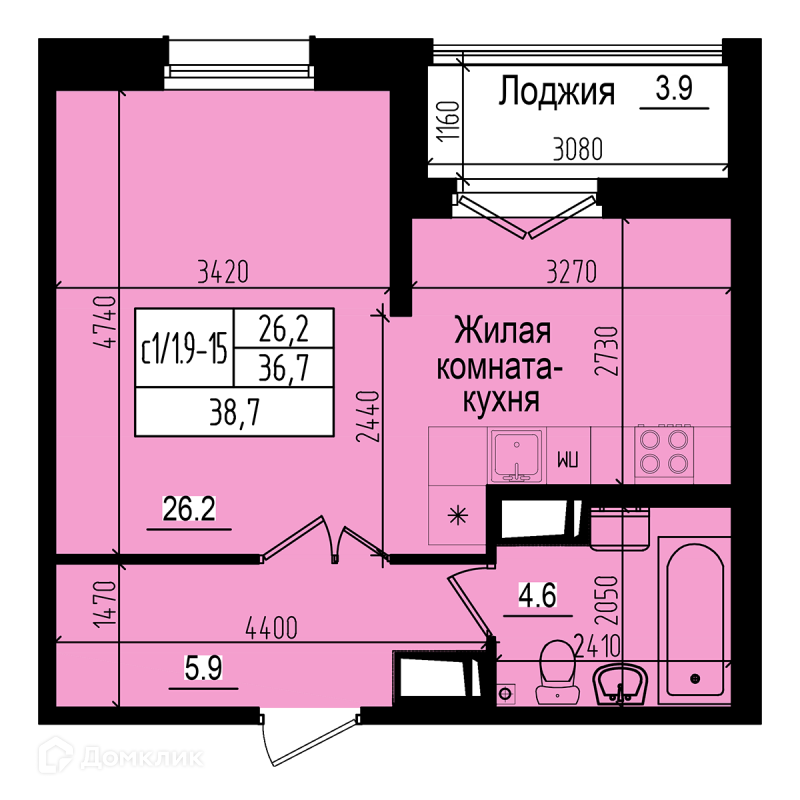 Жилая площадь 26.2 м2